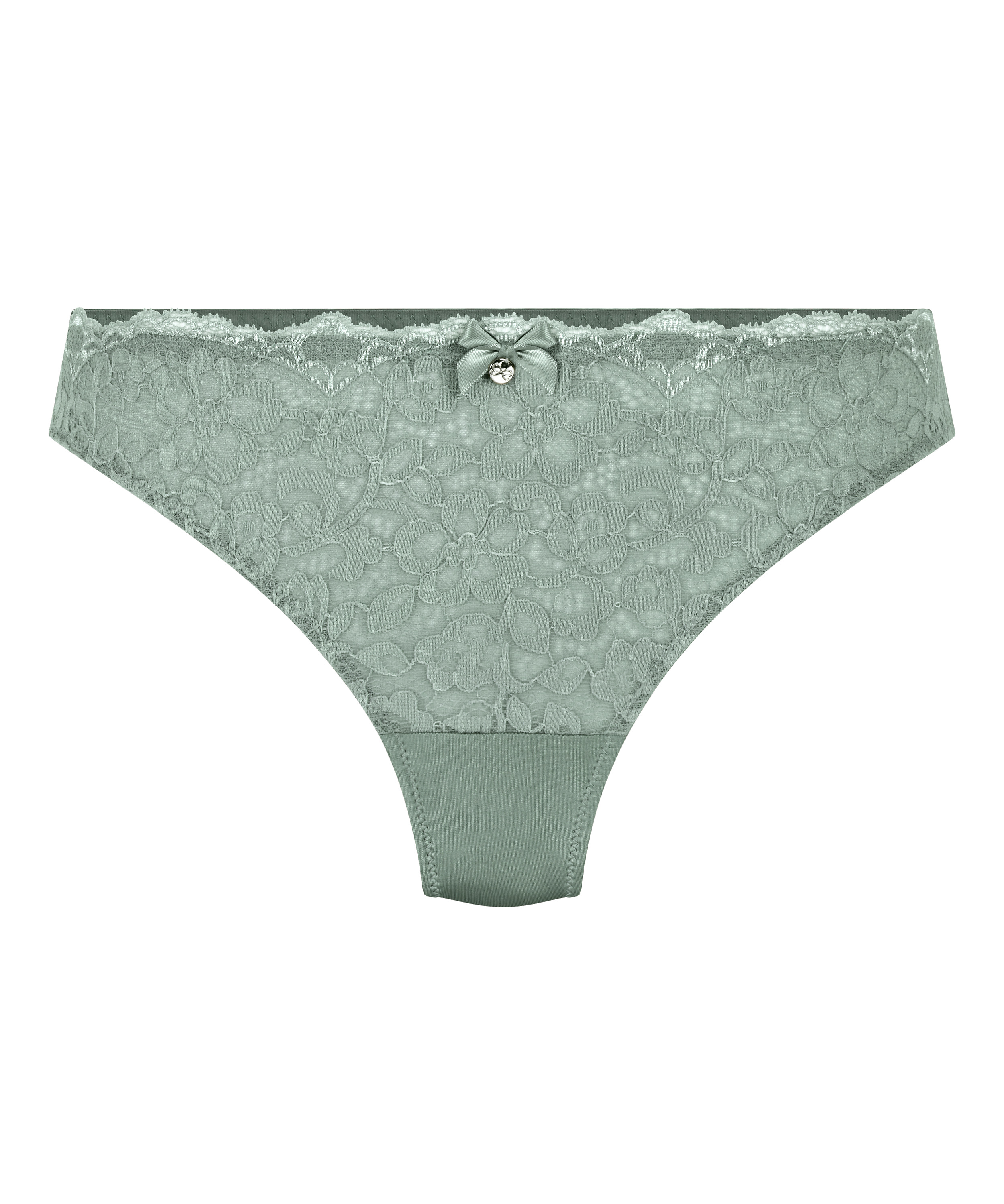 You'll look adorable in this thong! It features all-over lace with a floral pattern and is finished with a small bow in the middle. Combine with the matching bra for a complete look.
