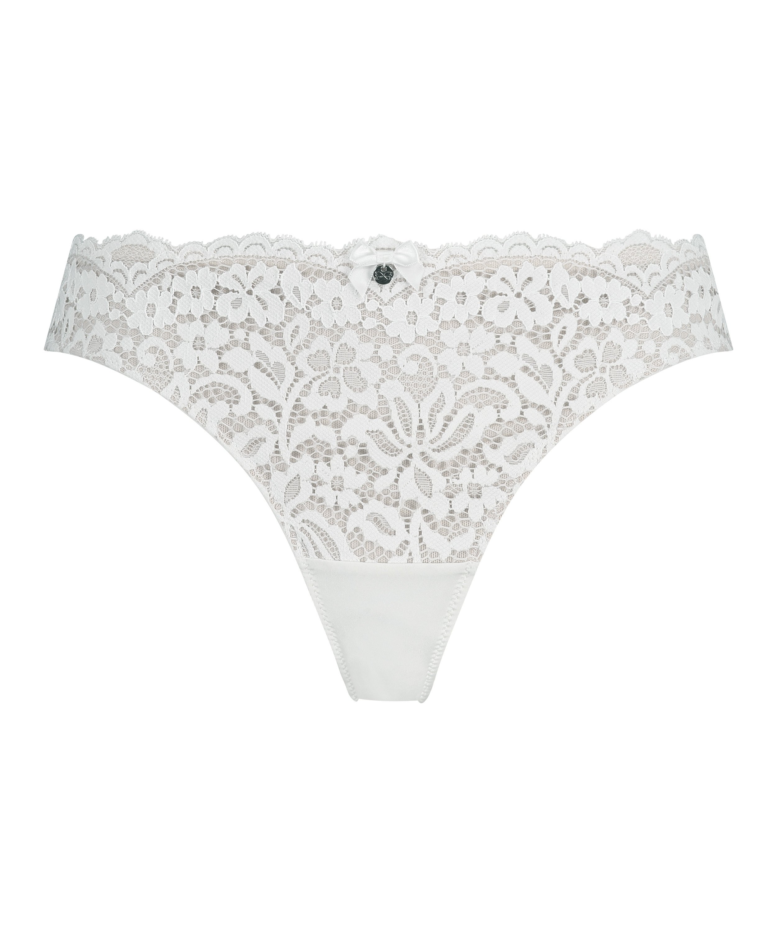 You'll look adorable in this thong! It features all-over lace with a floral pattern and is finished with a small bow in the middle. Combine with the matching bra for a complete look.