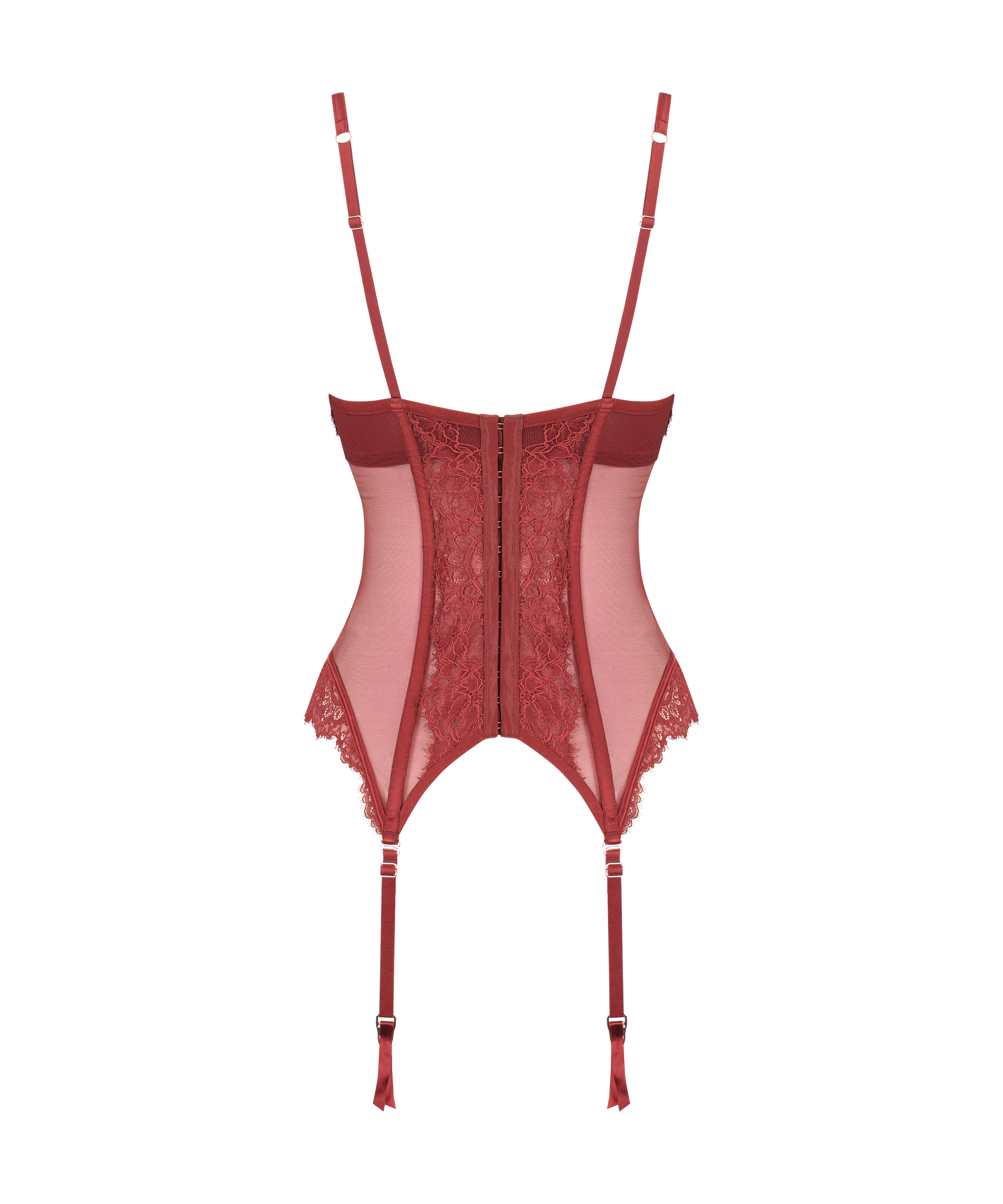 This fantastic item is a gem from our Noir Collection! This underwired bustier is padded. With stunning lace detailing, and a semi sheer body panel. Combine with matching items from the Noir Collection.