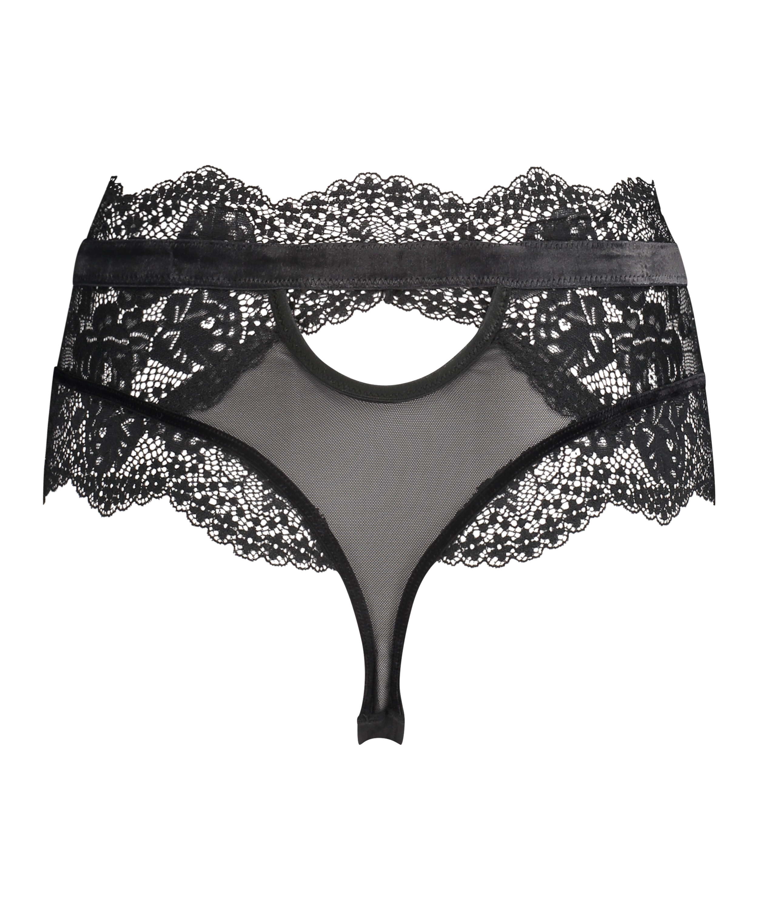 If you're after some lace, these thongs might just be what you're looking for. All-over sheer lace, and trimmed with an elasticated velvet waistband. Super trendy! Part of the Rebecca Mir Collection.