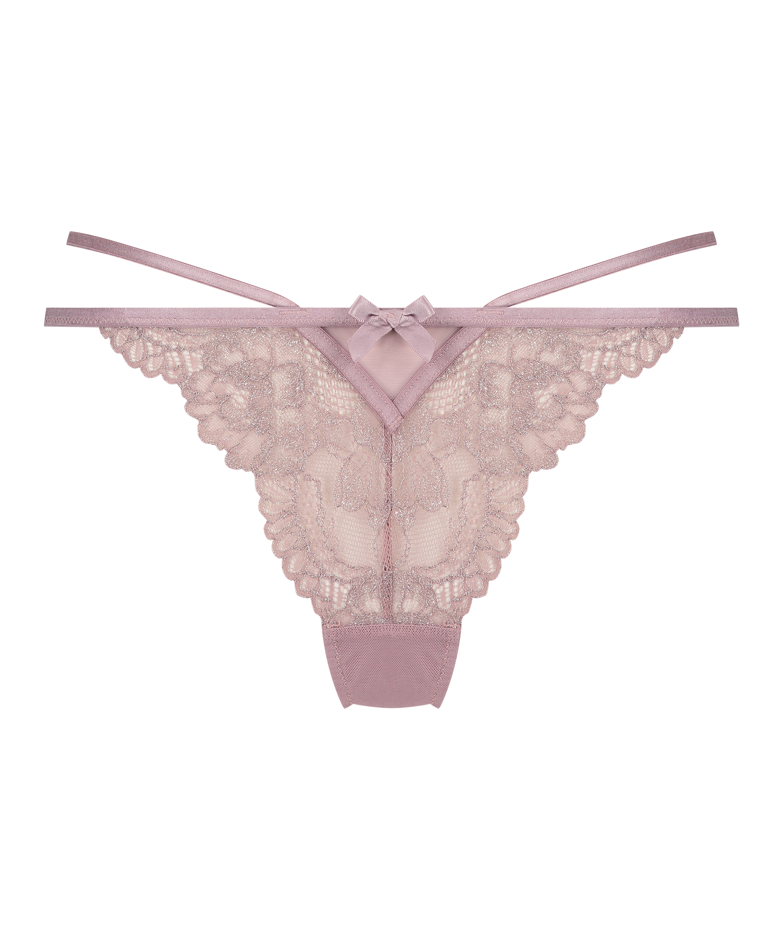 How nice is this thong? It includes both lace and mesh and a pretty bow on the front. Combine with matching items for the complete look!