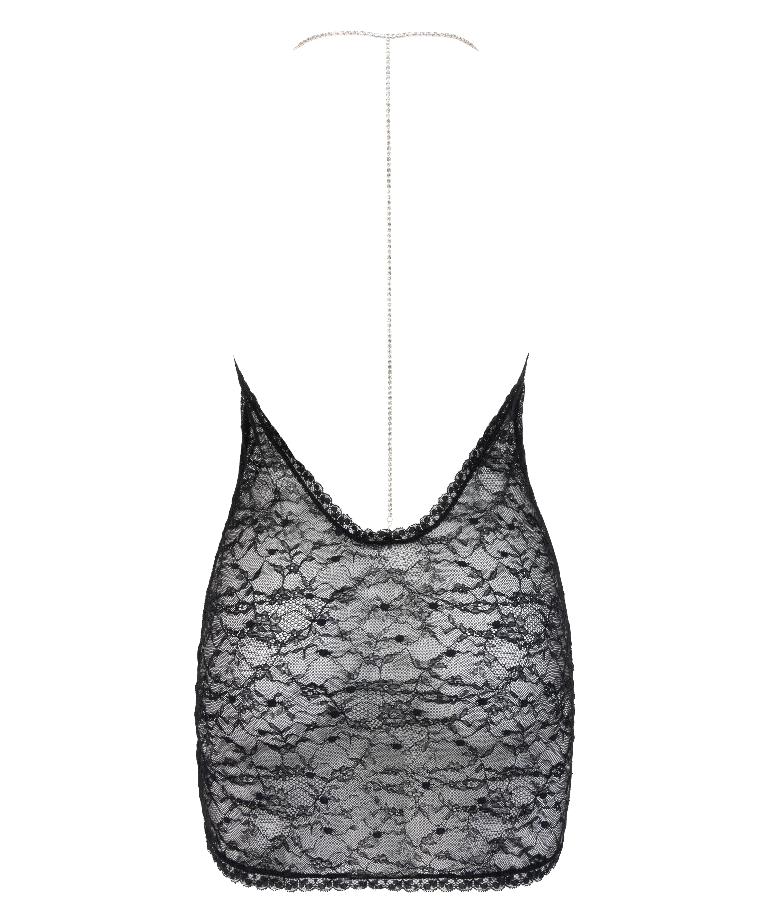This slip dress is incredibly sexy! The lace gives this slipdress a semi-transparent and provocative look. The back is almost completely open. Match with accesoiries. Part of our Private collection.