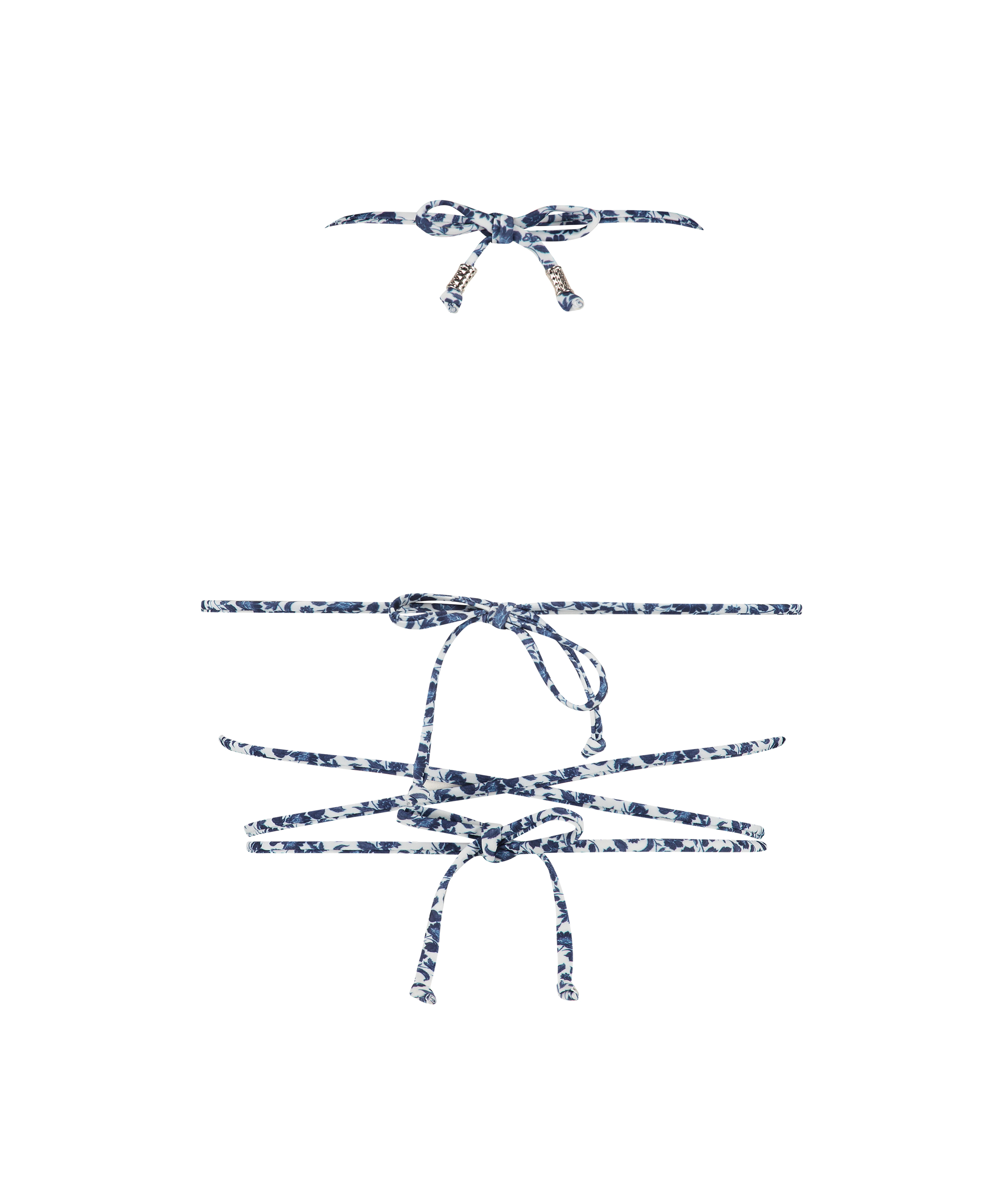 Steal the show with this amazing padded triangle top! Fully adjustable to your body with the tie closure on the neck and back. Decorated with lovely hardware and strappy details to hug your waist. Find the matching bottoms to complete the look!