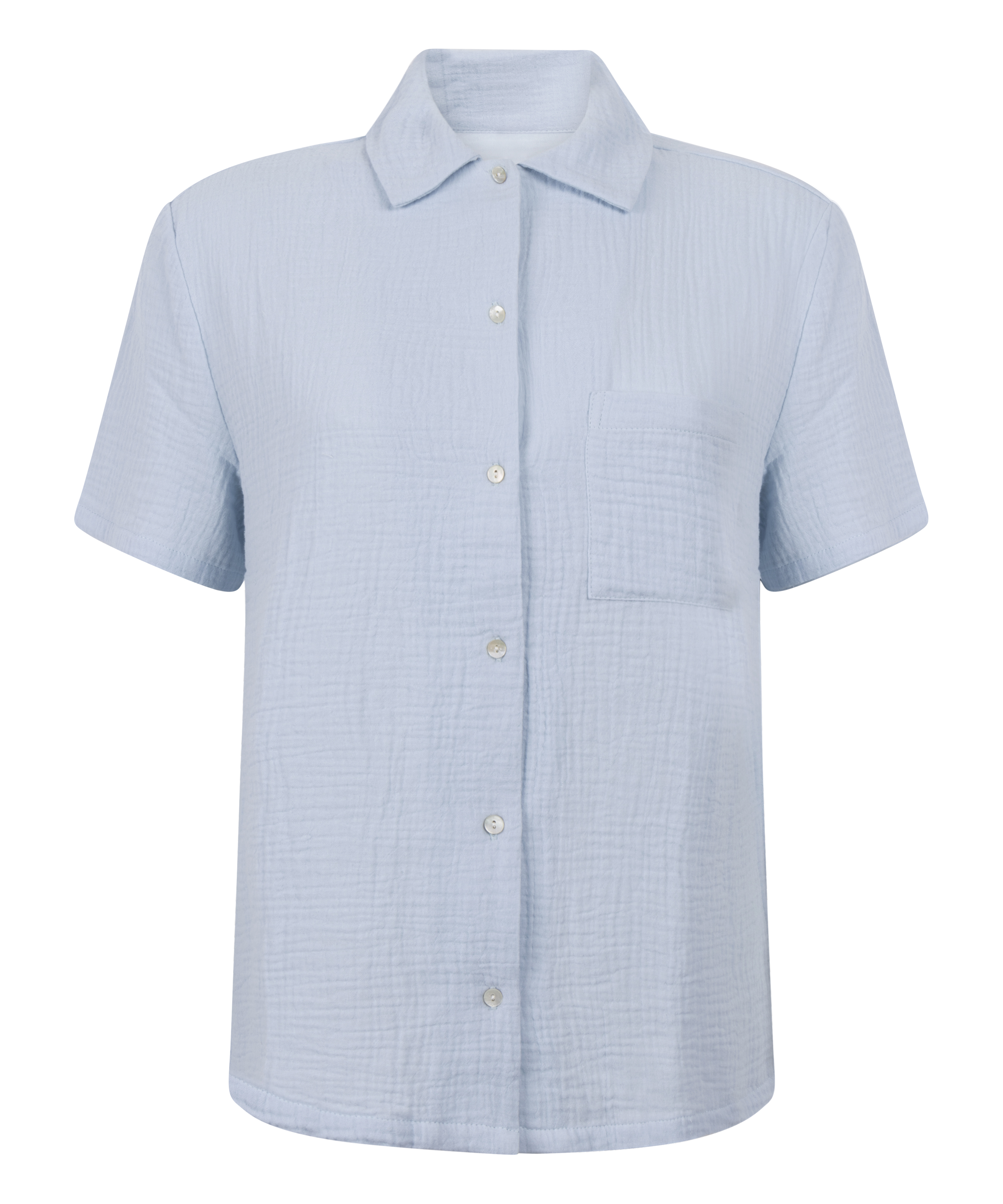 Feel comfortable in this classic pyjama top with button detailing on the front. It's made out of lightweight and breathable material, perfect for hot summer nights. Complete the look with the matching pants.
