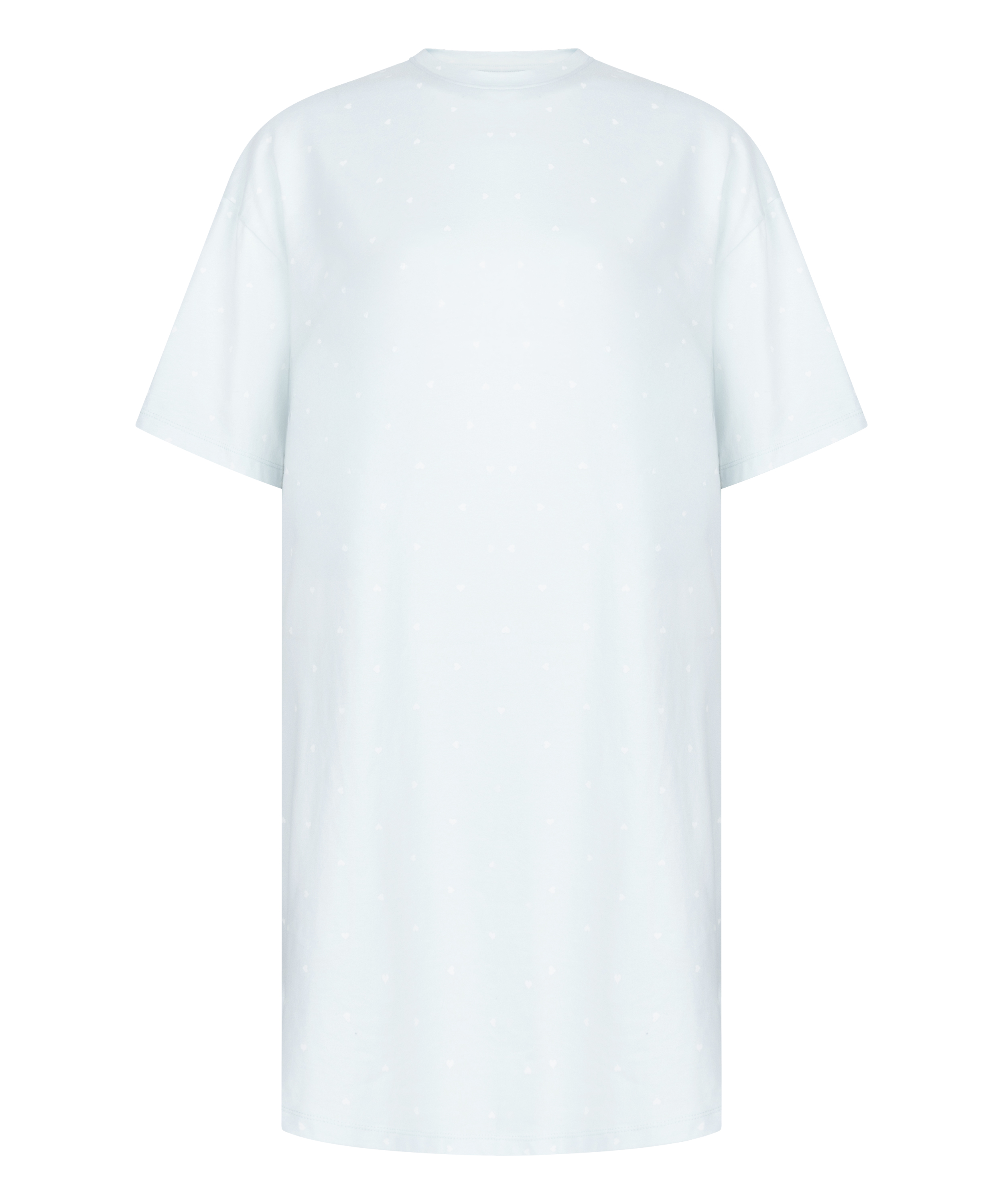 Drift into comfort with our nightshirt. Designed for ultimate relaxation, this nightshirt features a classic round neck. The length reaches just above the knees, providing a cozy and modest fit. Combine with your favorite slippers for a complete look.