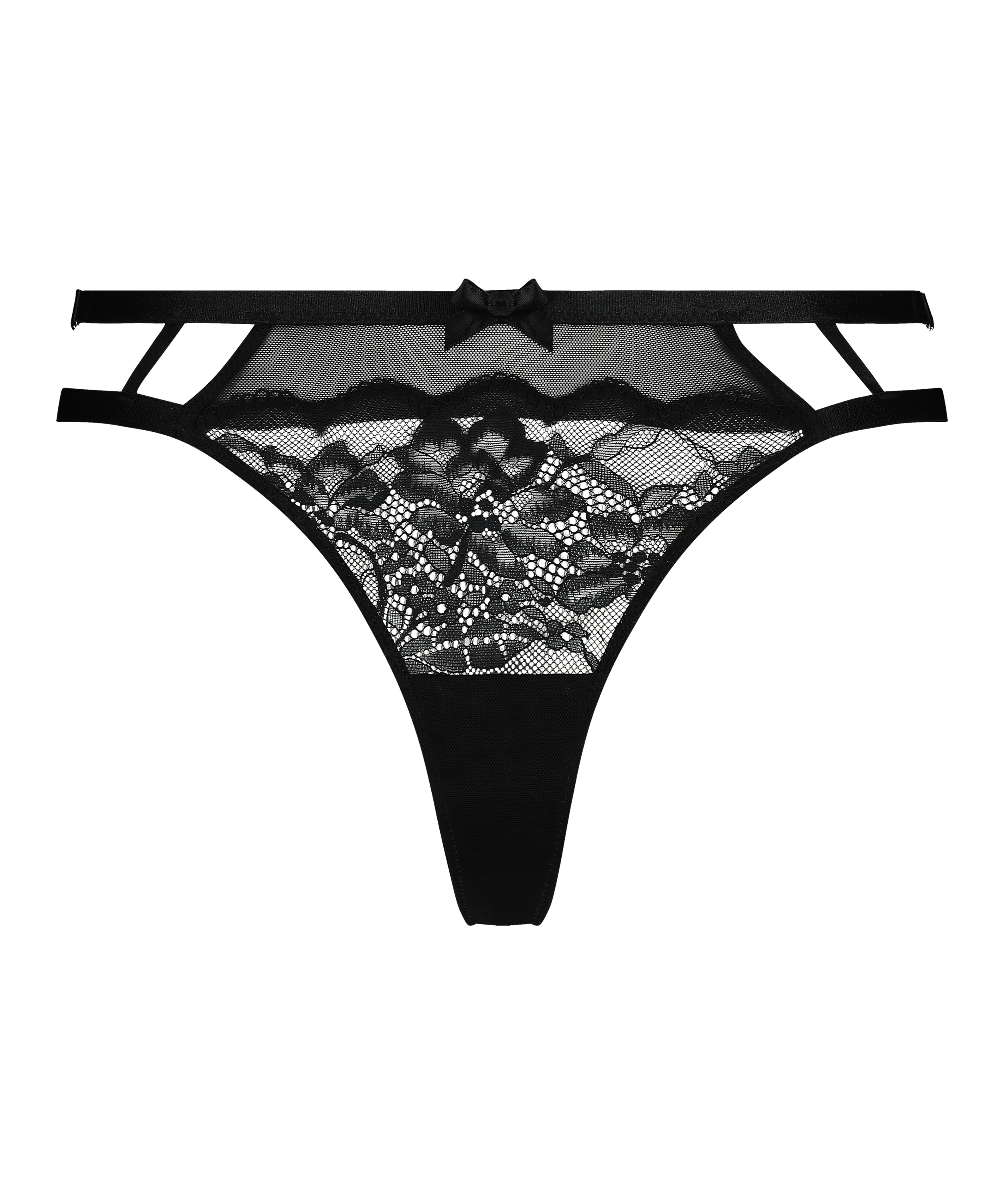 Embrace your curves in this sensual high leg thong! This thong has lace details in the front and mesh in the back. The strappy details around the hips allow for a very sexy fit. Combine this with one of our current favourites!