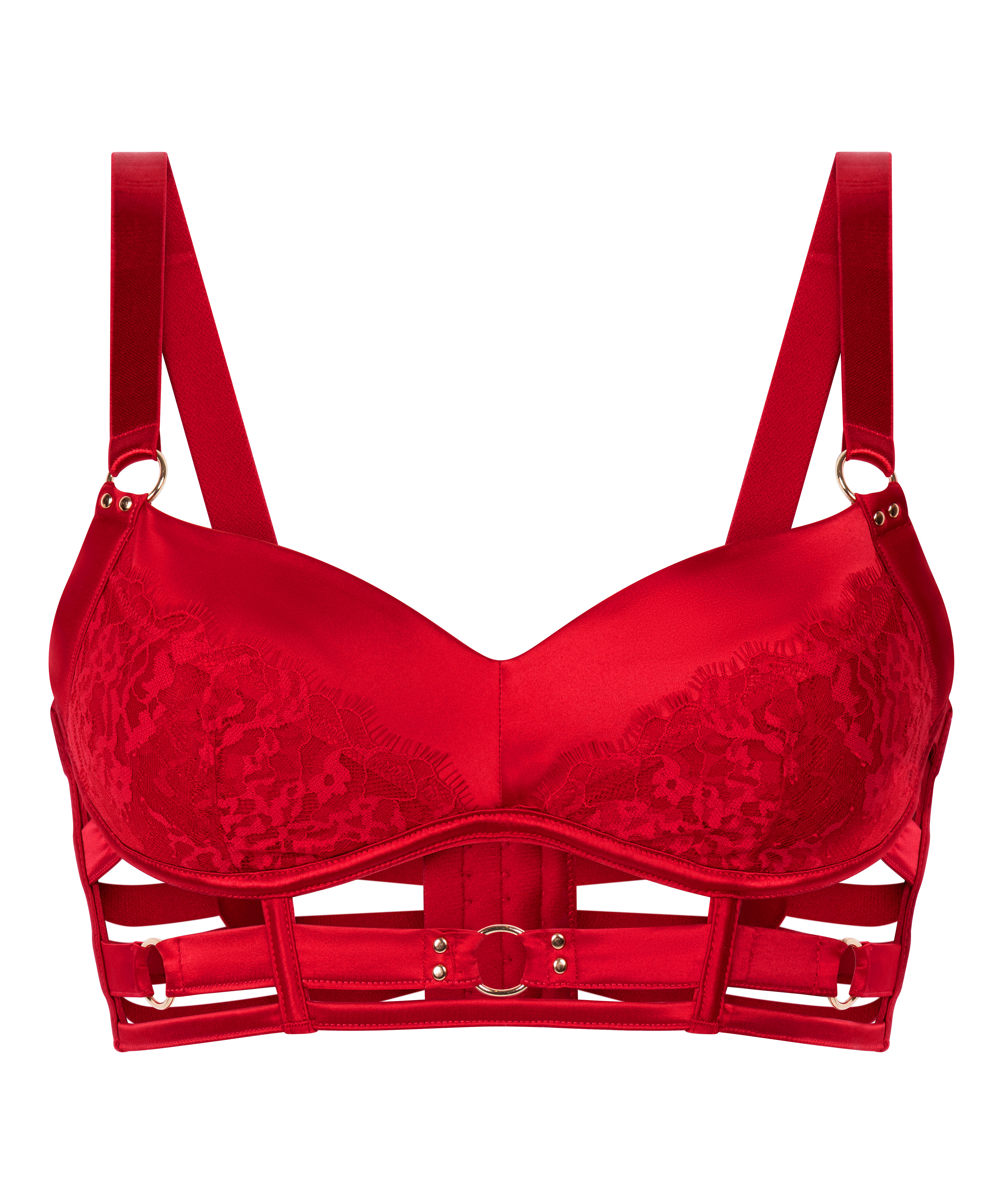 Soft meets striking in our bralette – designed for comfort. This bralette features padded cups for gentle shaping and support, while lace trims the bottom of each cup, adding a romantic finish. Cut-out details bring a modern edge to the silhouette, making it perfect for layering or wearing as a statement piece. Combine with the matching bottom for a complete look.