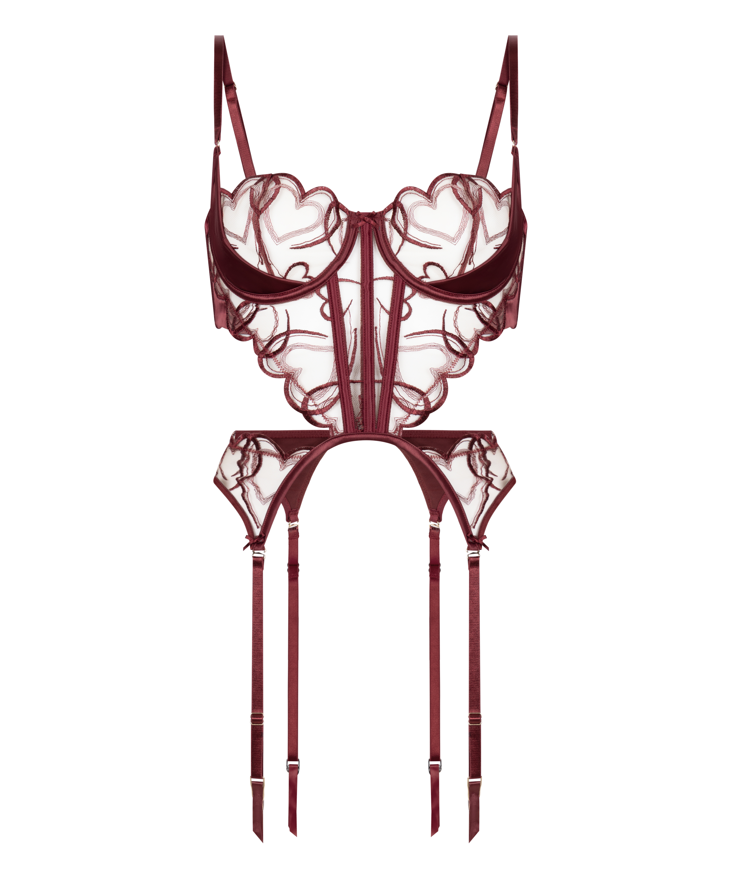 Romantic and structured, this satin bustier is adorned with delicate heart-shaped lace for a dreamy, feminine look. Unpadded and underwired, it offers natural shaping with elegant support. The smooth satin adds a luxe feel, while the sculpted silhouette enhances your curves. Perfect for layering or wearing solo for a bold yet sweet vibe.