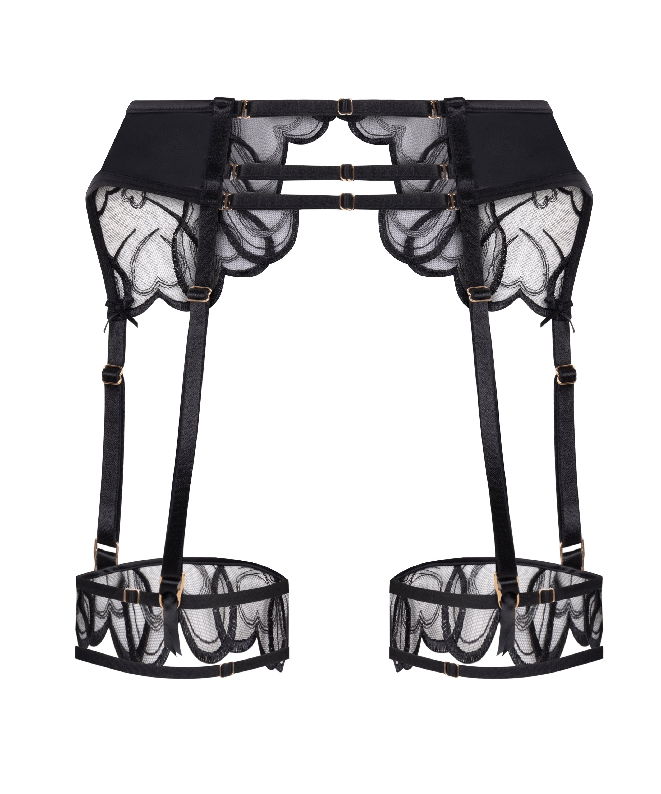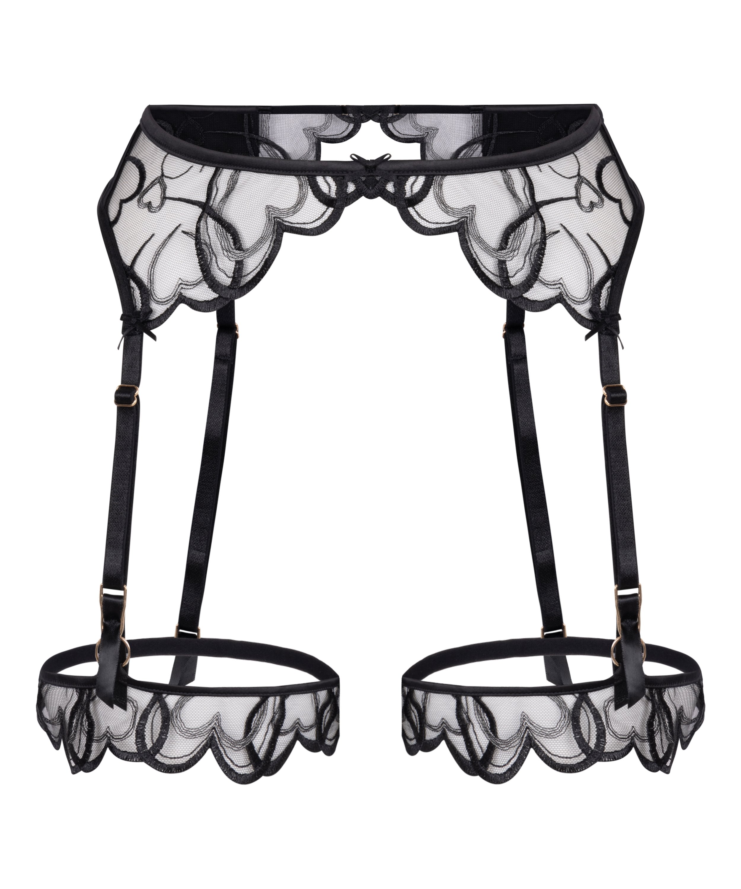 Add a flirty finish to your lingerie look with this romantic suspender belt, featuring delicate heart-shaped lace details. Designed to sit comfortably at the waist, it adds a playful yet elegant touch to any set. Adjustable straps allow for a perfect fit with your favorite stockings. Ideal to pair with the matching bra and brief!