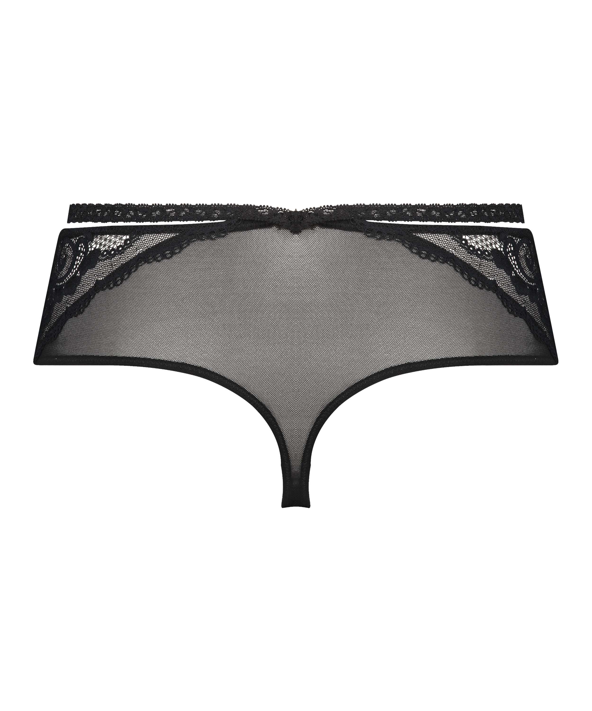 This boxer thong exudes elegance! The panties have strappy details and pretty patterned lace fabric. Combine with a matching bra or bralette.