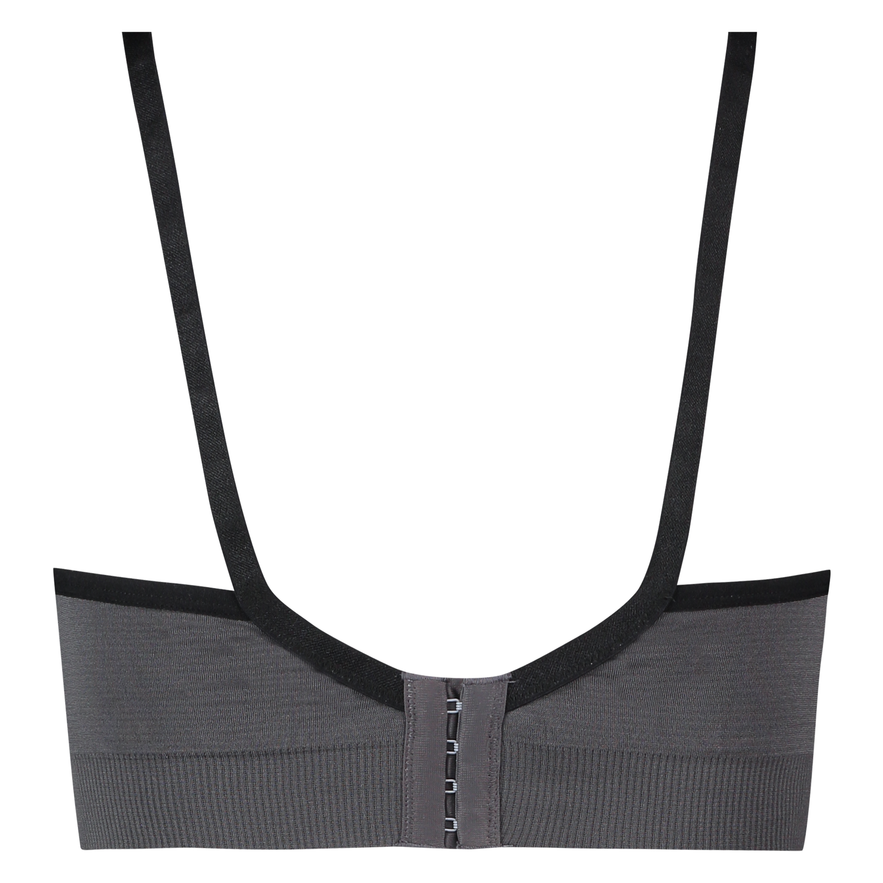 This nursing bra with padded cups is both practical and attractive. The cups can be unhooked from each other for easier nursing. The cups provide extra support underneath for greater comfort.