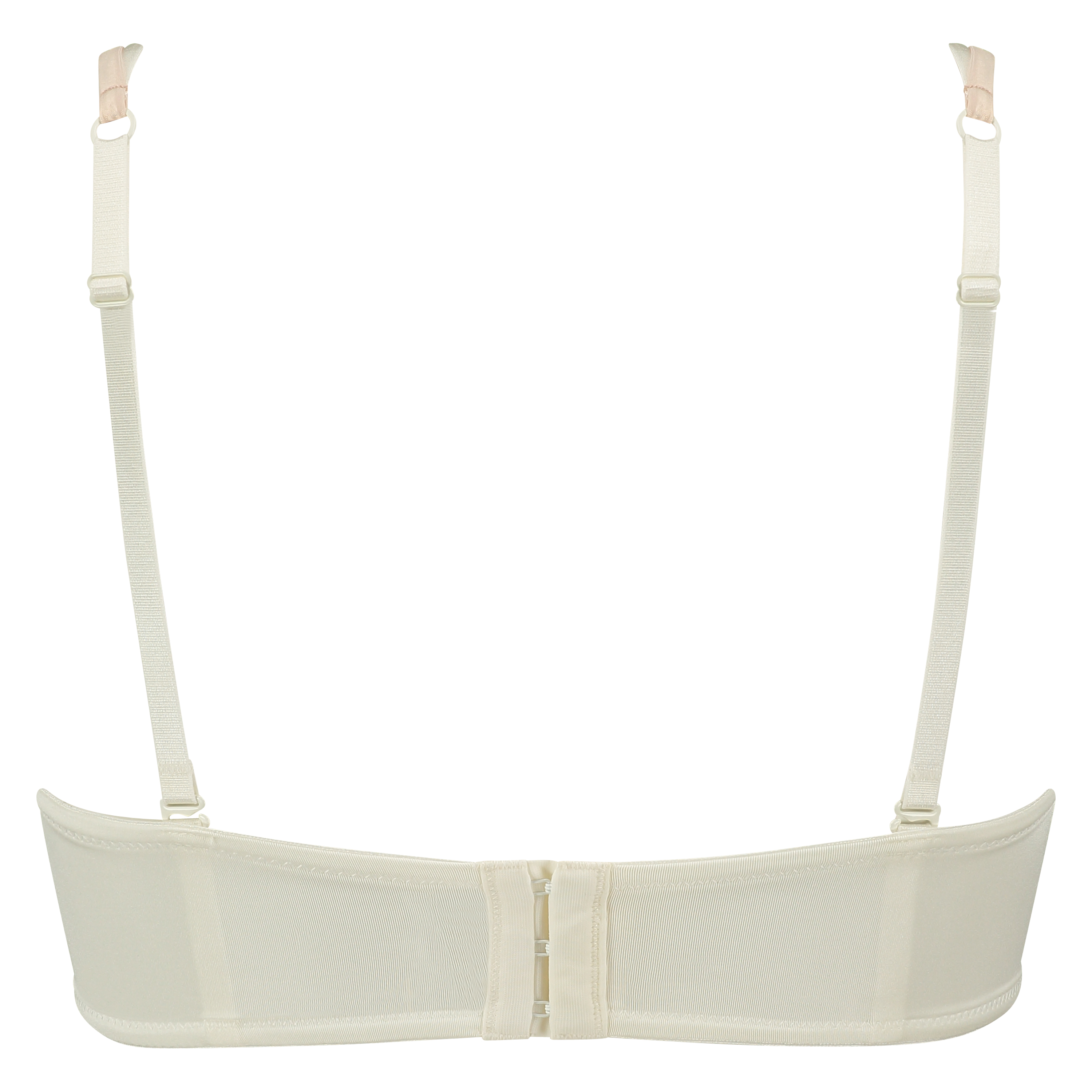 This romantic padded and underwired bra features cups finished at the top with satin-look fabric. The small bow between the cups and the double shoulder straps add finishing touches.