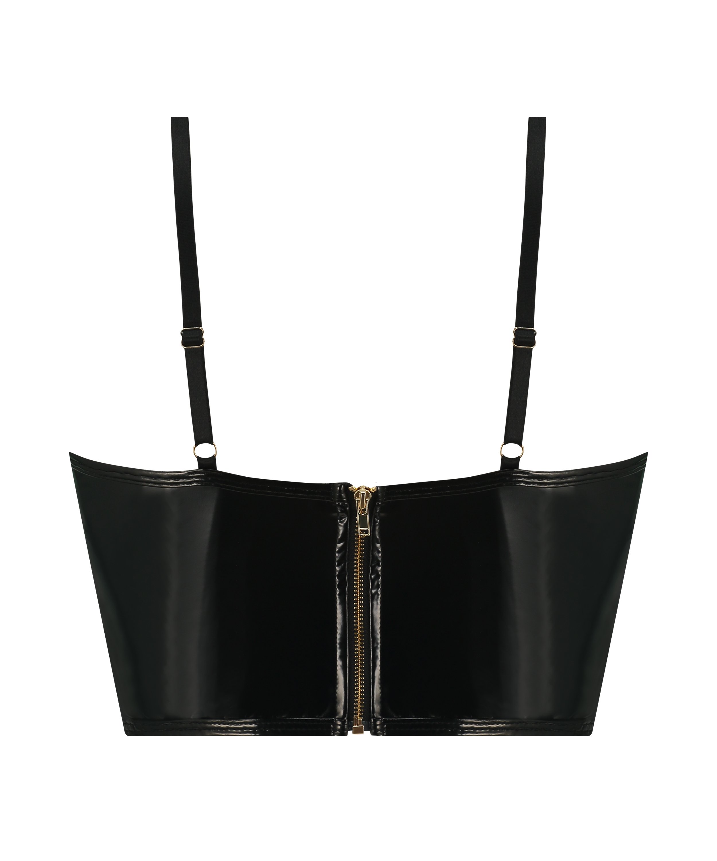 Feel seductive in this sexy top! With a fake leather look and spicy cut-out details on the front. This top has a zip closure on the back and the shoulder straps are adjustable for extra comfort. Pair with the matching pants. Part of our Private collection.