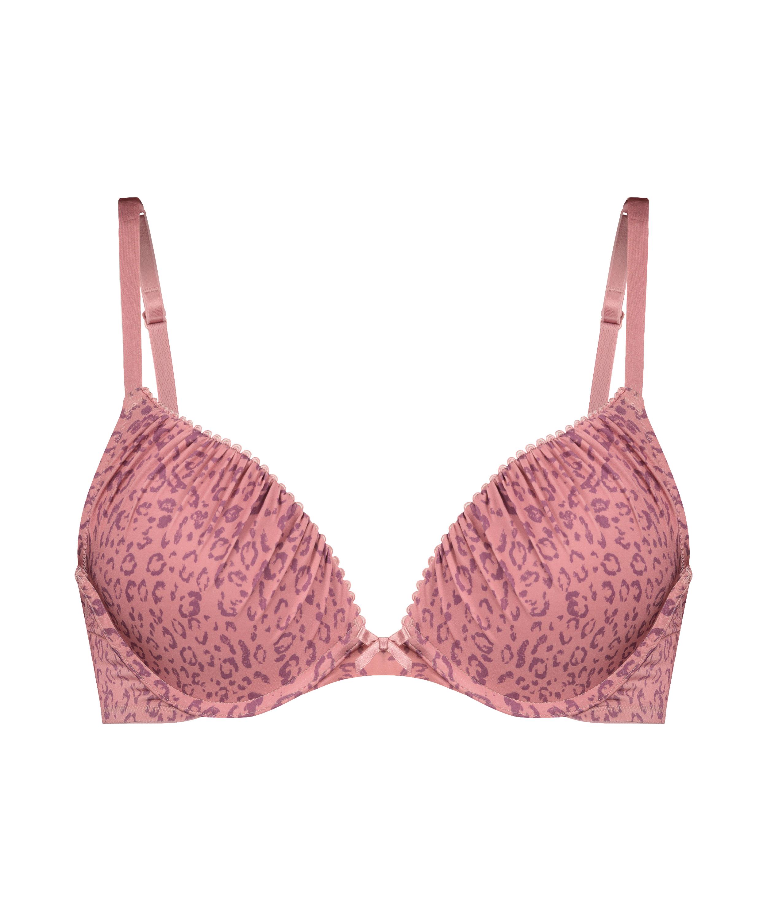 Go for an elegant look with this push-up bra made from shiny material with pleats at the top of the cups. The cups are finished with a subtle lace border at the top and there is a small bow between the cups. The shoulder straps are finished with a pretty pleated effect.