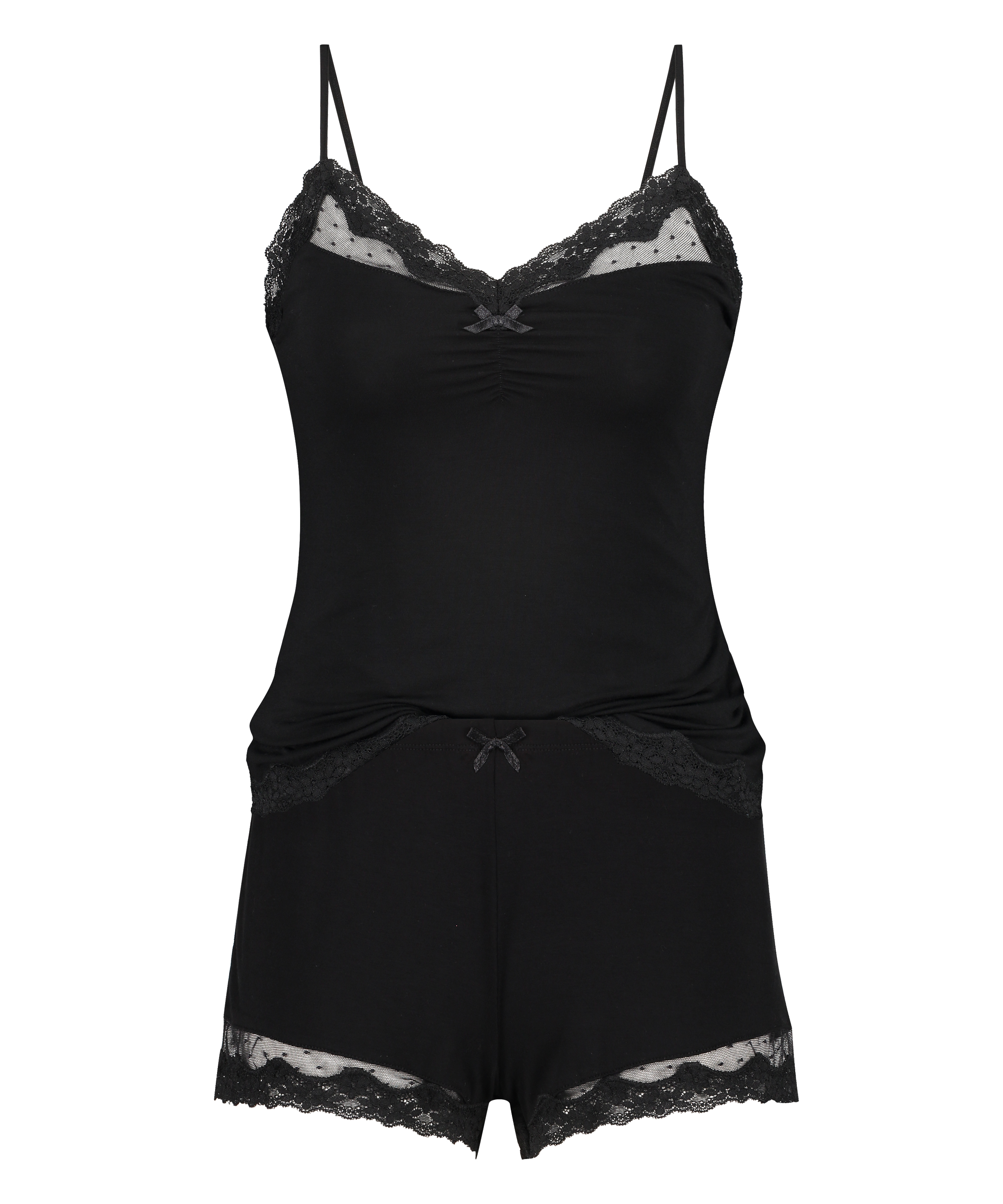 Have a lovely sleep in this comfortable pajama set finished with nice details.