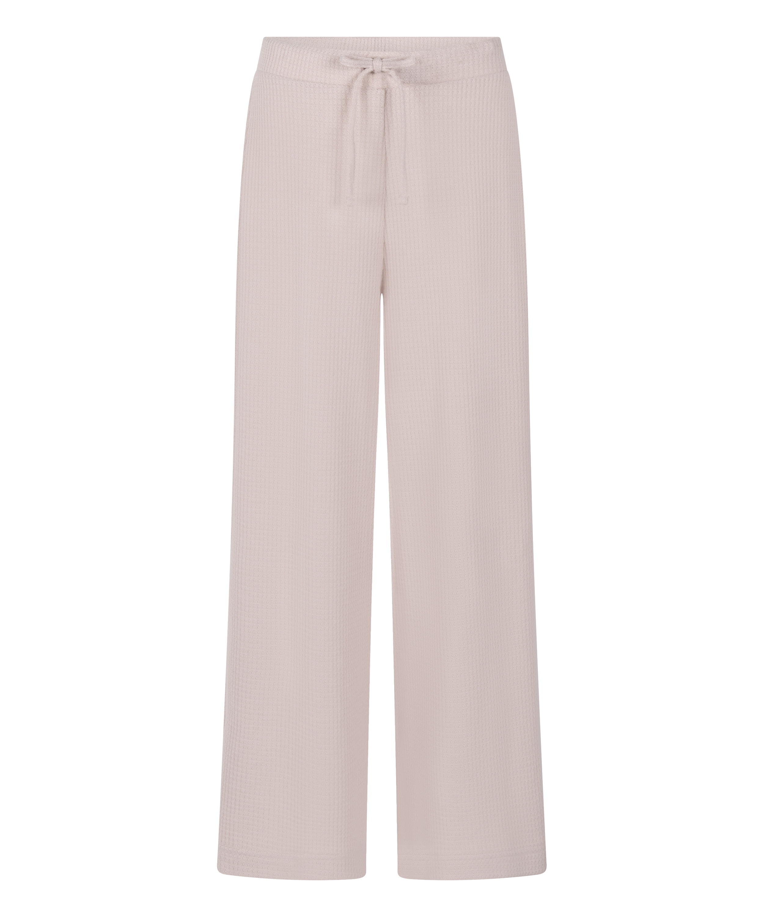These long wide-leg pants in waffle texture combine relaxed comfort with effortless style. Crafted from soft, breathable fabric, they feature an elastic waistband with a tie for a customizable, secure fit. The wide-leg cut creates a flattering, flowy silhouette, perfect for lounging, casual outings, or pairing with the matching top!
