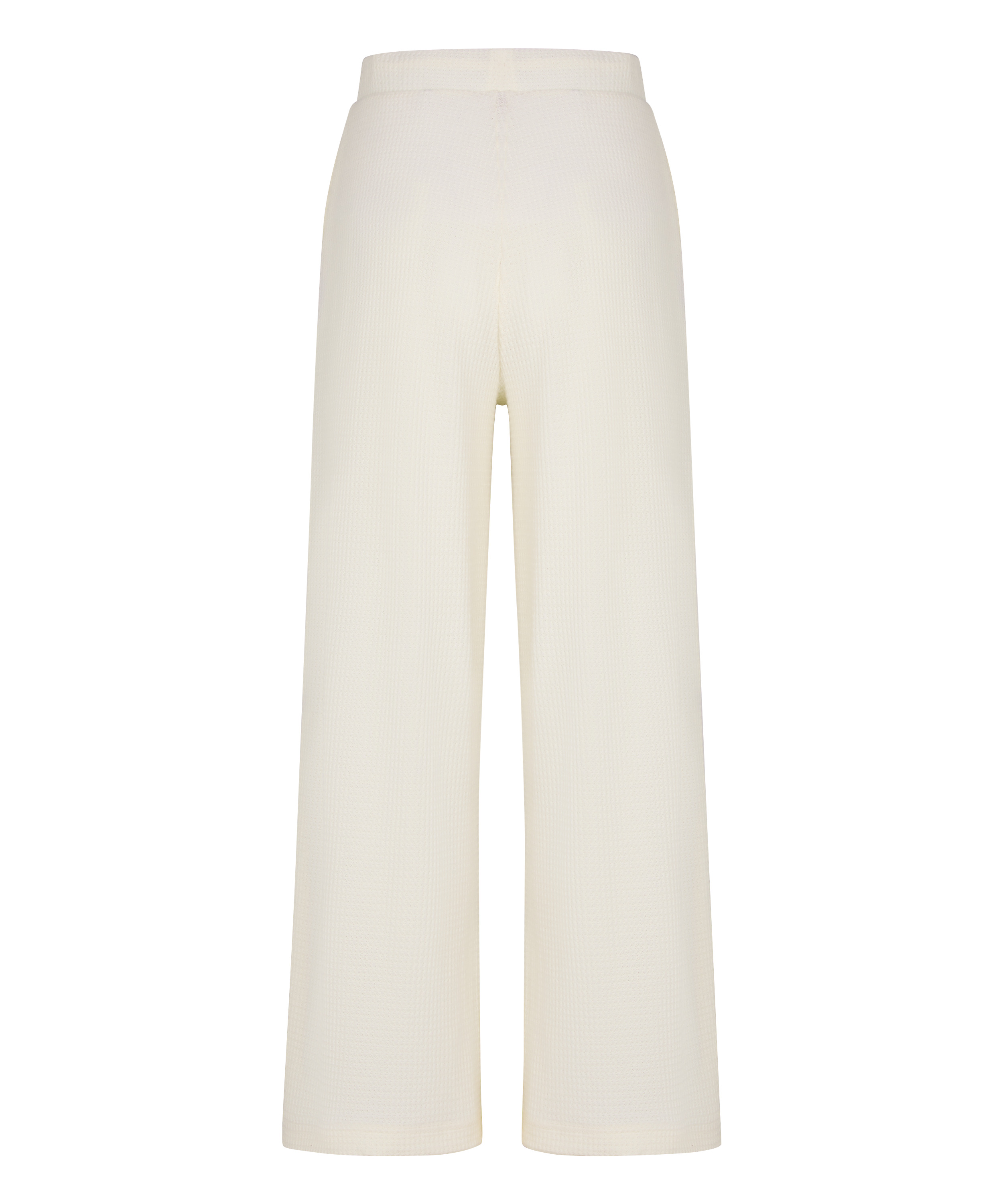These long wide-leg pants in waffle texture combine relaxed comfort with effortless style. Crafted from soft, breathable fabric, they feature an elastic waistband with a tie for a customizable, secure fit. The wide-leg cut creates a flattering, flowy silhouette, perfect for lounging, casual outings, or pairing with the matching top!