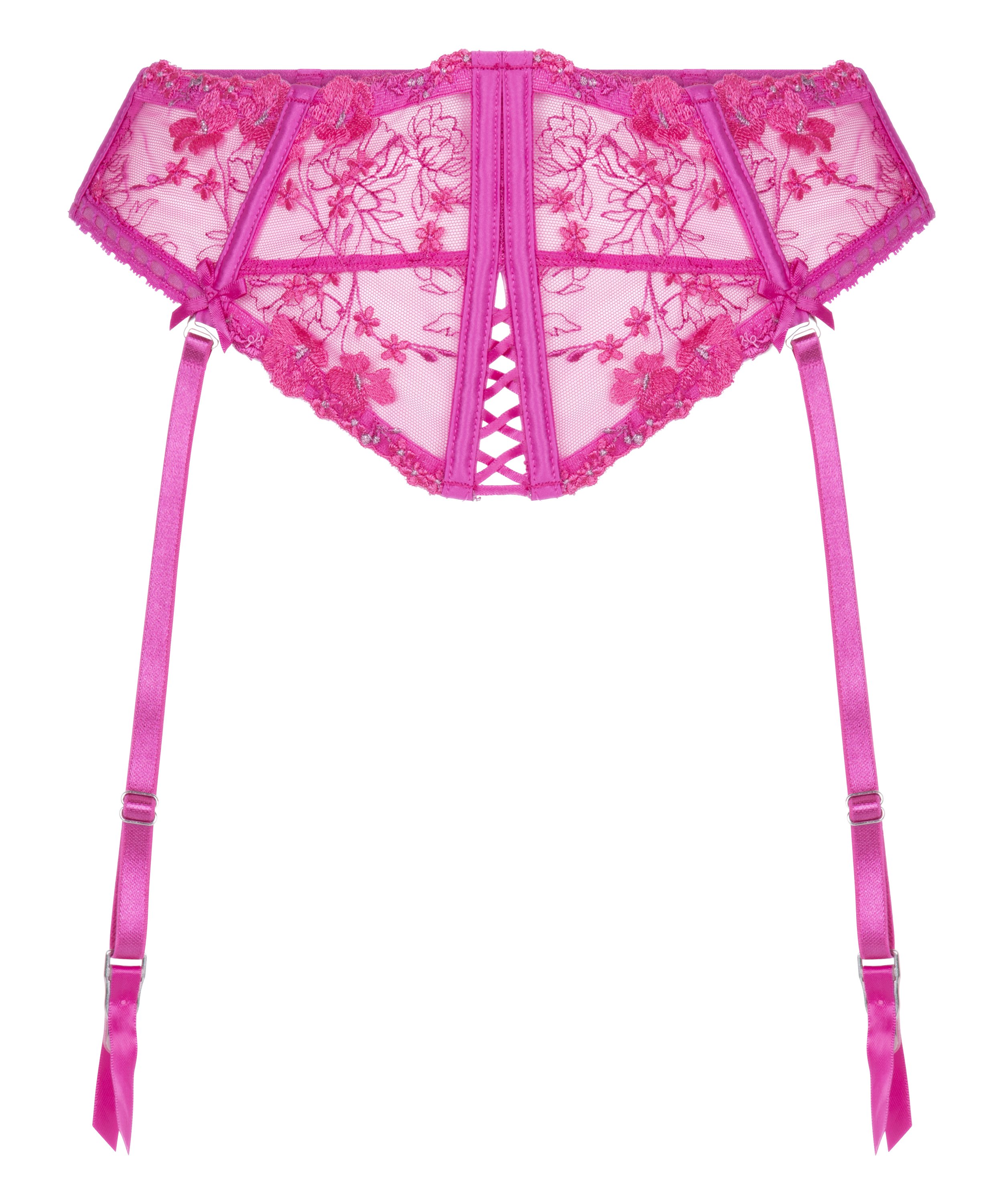 Complete your look with this floral embroidered suspender belt that’s all about vintage-inspired glamour. The sheer mesh and soft detailing make it a flirty finishing touch to your lingerie set. Adjustable straps and a comfy fit ensure it’s as practical as it is pretty. Pair it with the matching bra and panties for a coordinated, feminine vibe!