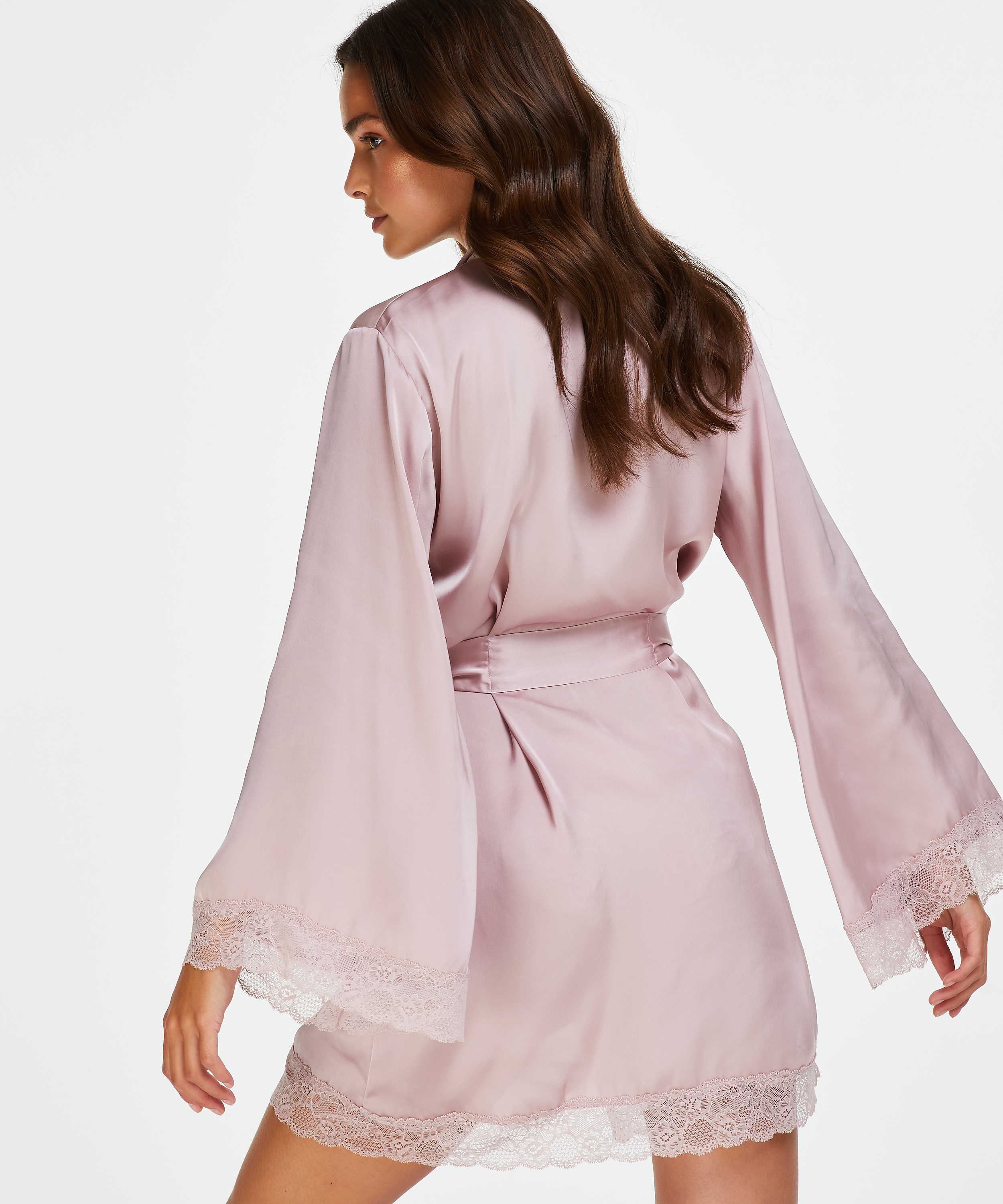 Feel sexy in this stunning kimono! The kimono has a satin look and feel and is finished with lace. This kimono is perfect for women who are shorter than 1.60m. Combine with a beautiful lingerie set from the collection!