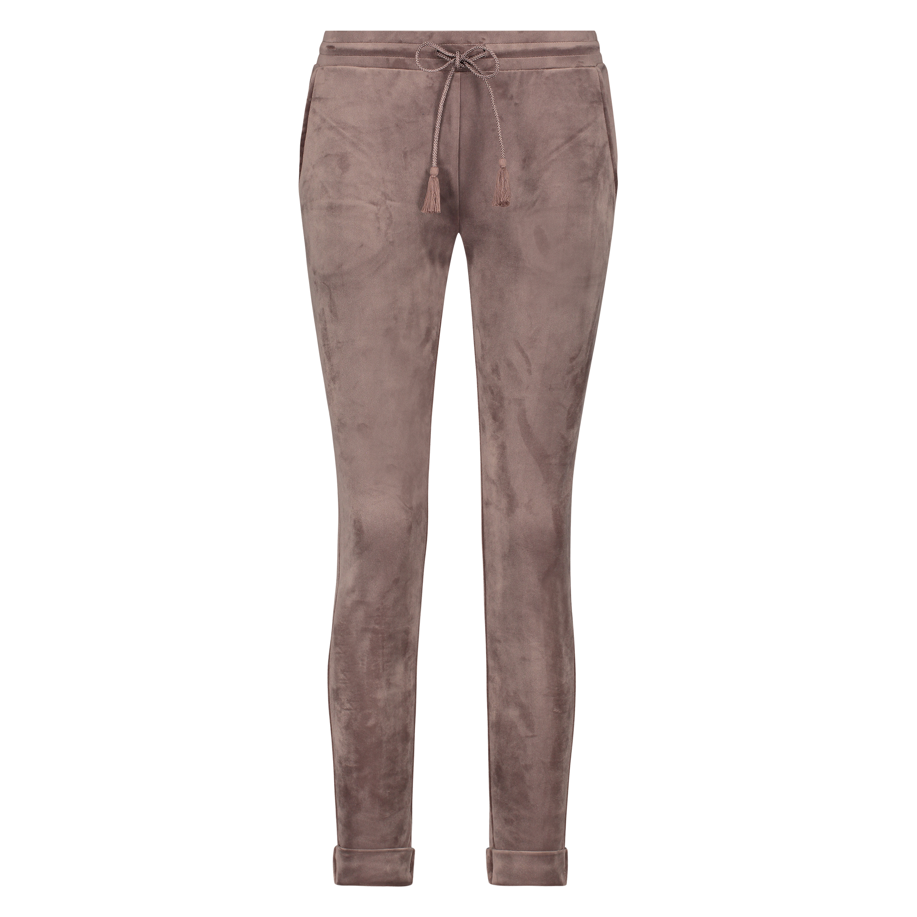 These jogging bottoms are perfectly designed for the ultimate lazy day. They are made from velours material, making them super soft. They are finished with braided string. Combine it with a matching top for a complete set! The trousers are 7.5 centimetres shorter than the standard fit and have a petit-fit. This makes them perfect for women shorter than 1.60m.