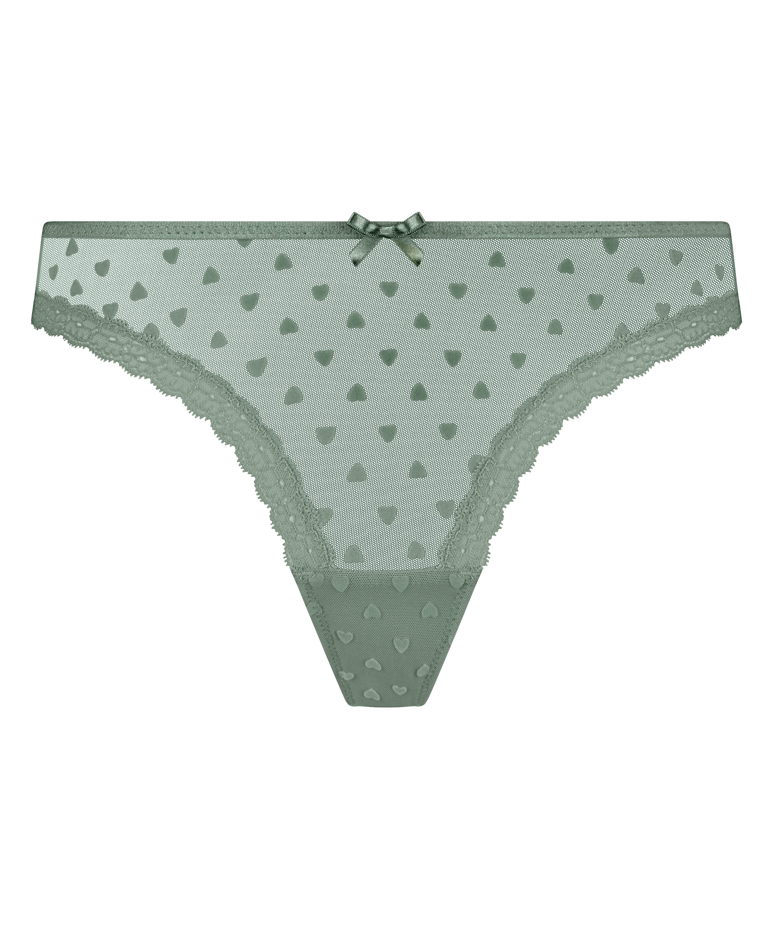 Feel comfortable in this pretty thong. The thong has a lace trim and velvet heart detailing. Pair with your favourite bra to complete the set.