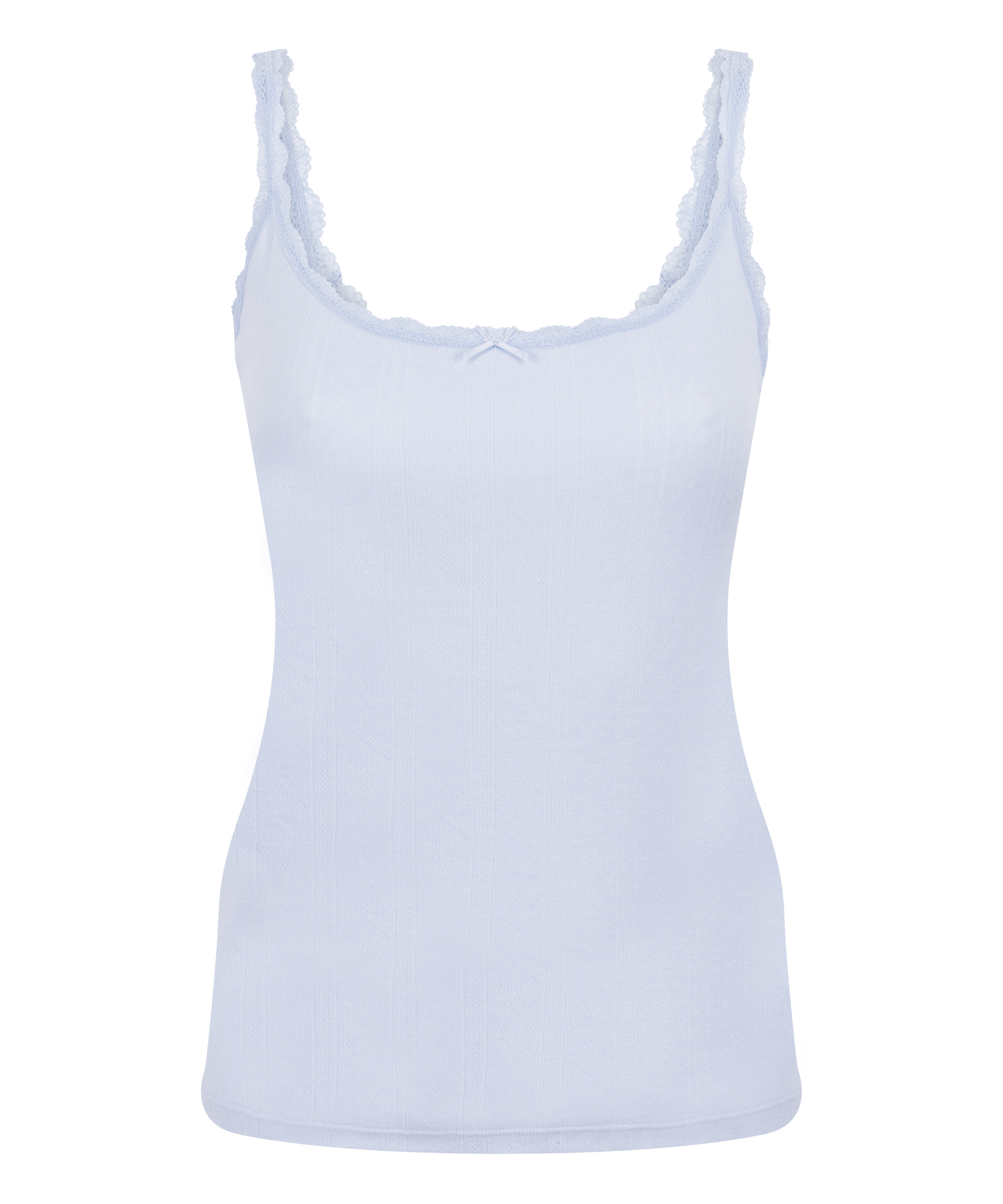 Embrace effortless charm with our Singlet, a perfect mix of femininity and comfort.. Made from soft pointelle fabric, this singlet features a delicate textured pattern that adds subtle elegance. The lace details along the neckline bring a romantic touch,