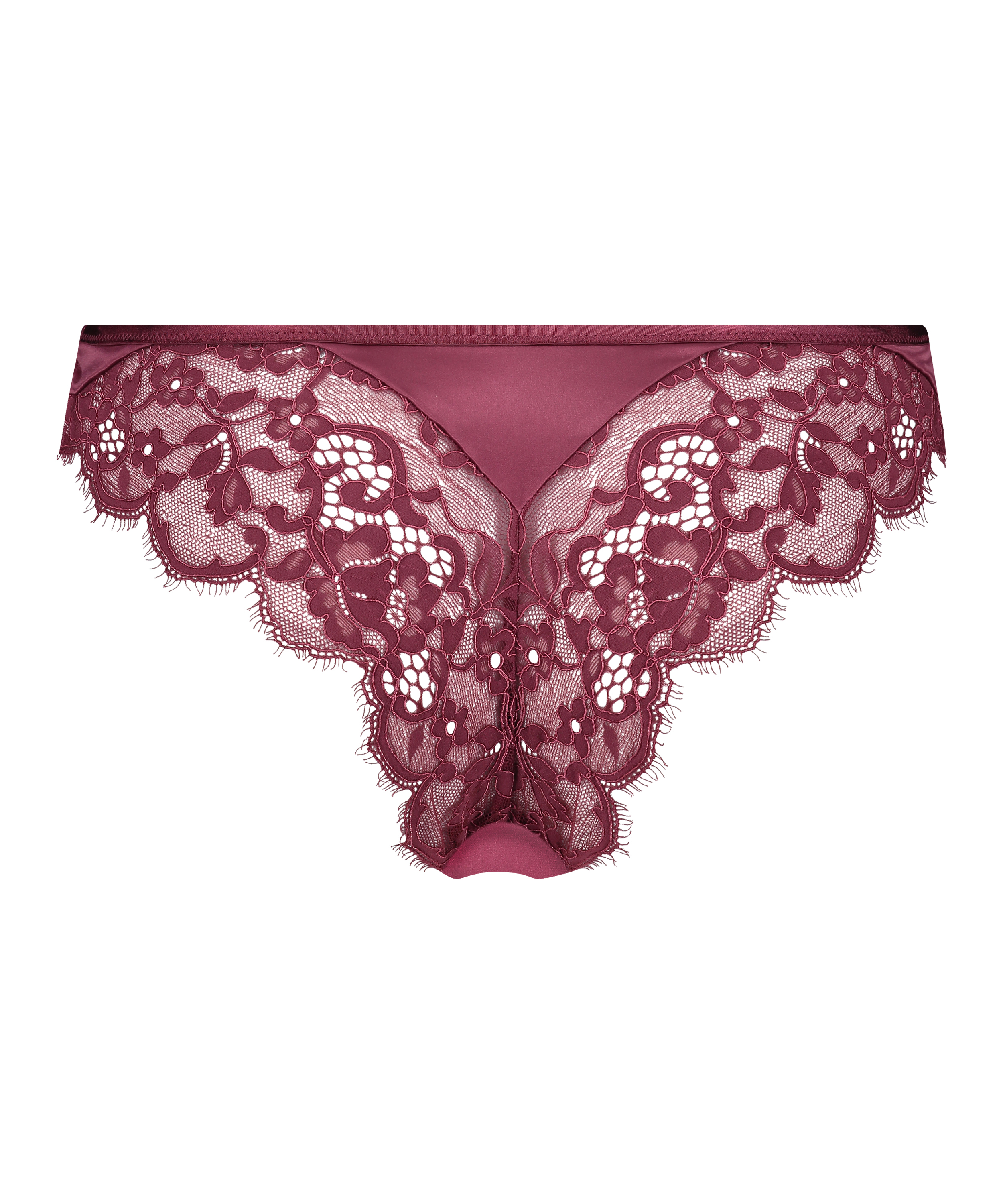 This beautiful Brazilian has a satin look and feel and is finished with lace. Complete your set with matching items! Part of the exquisite Noir collection.