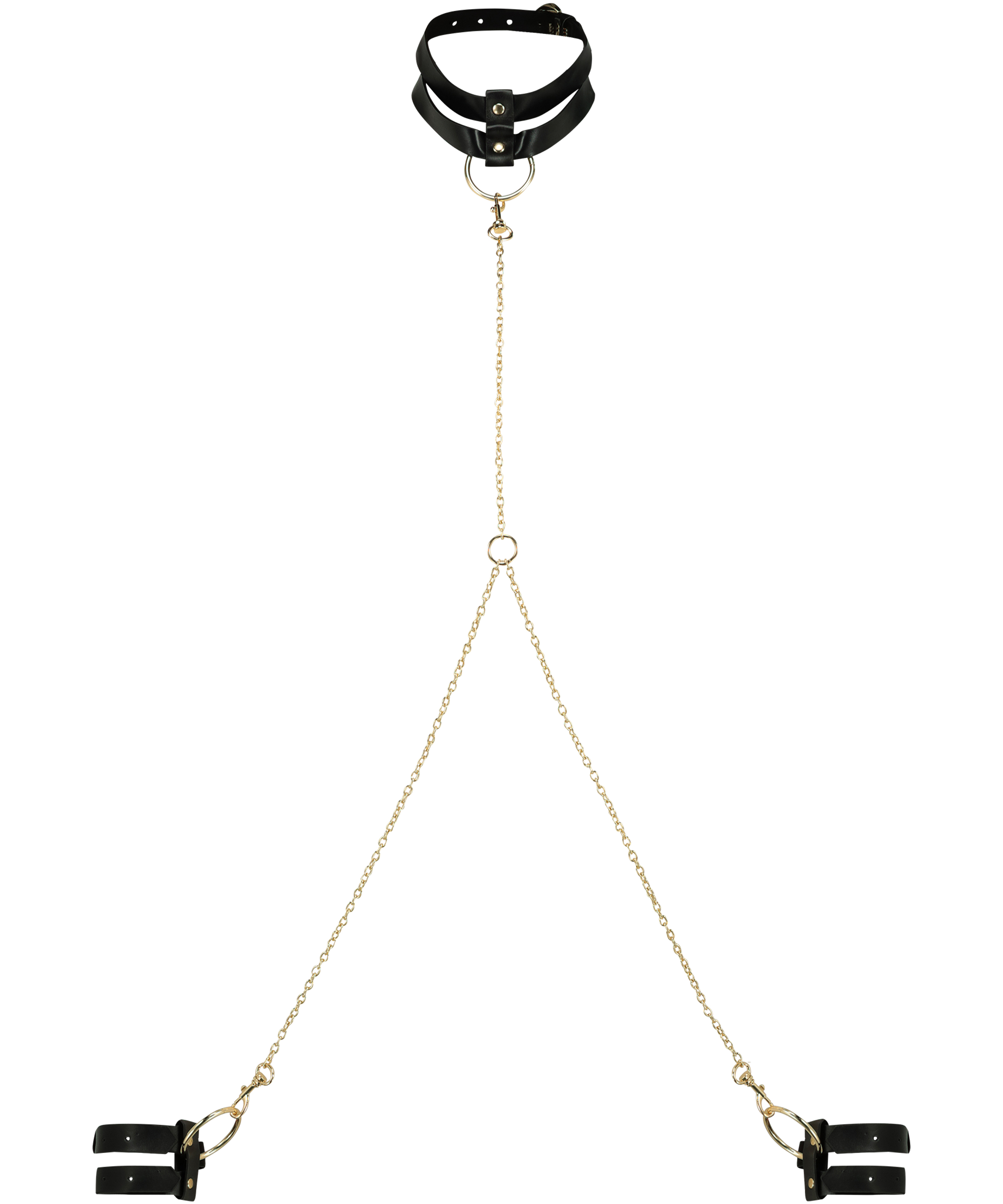 Nothing is more exciting than a choker set. The leather-look choker and handcuff set brings you back to seductive basics. Finished with our trademark gold-coloured hardware. Wear this powerful piece over one of our exciting Private sets.