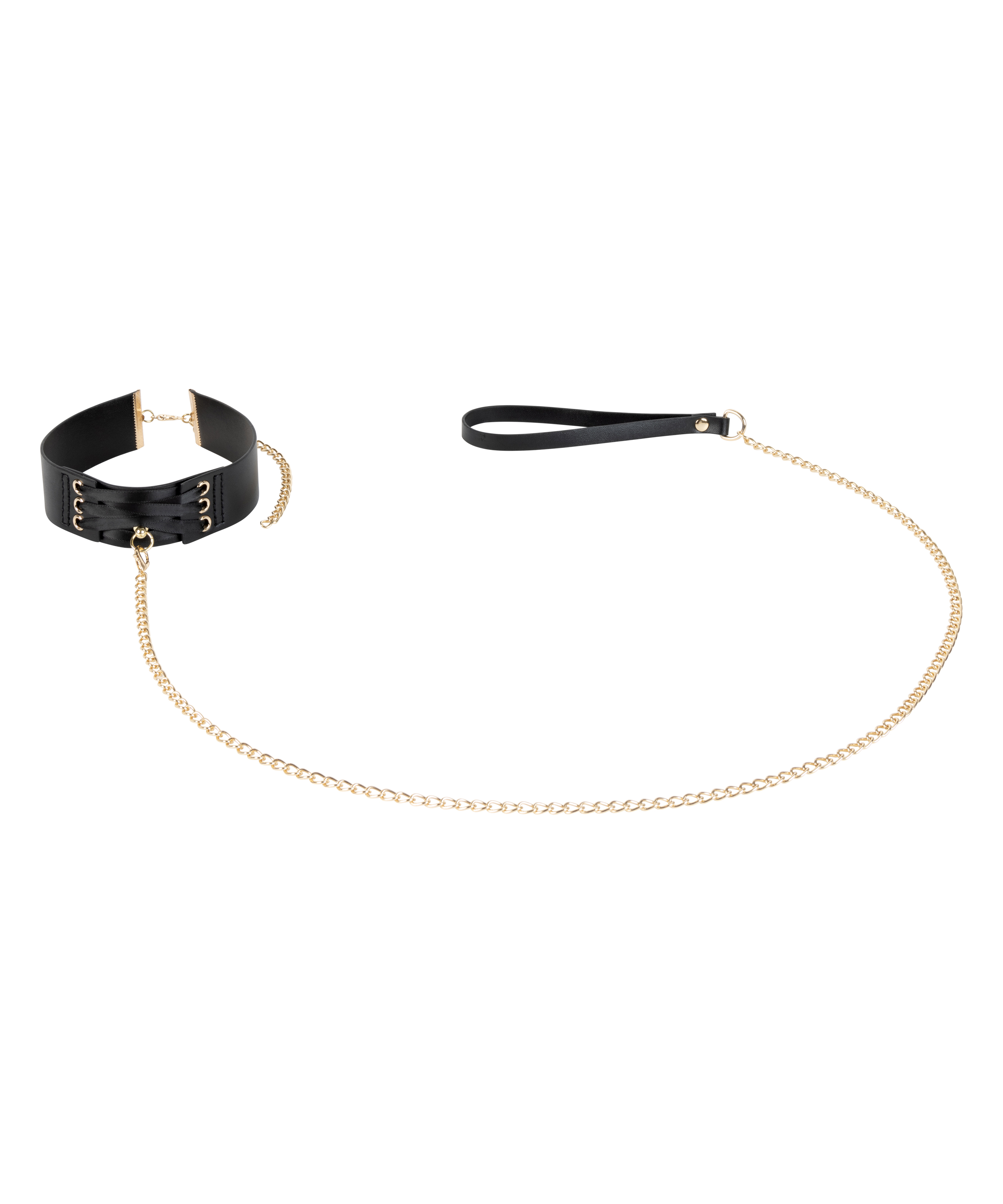 Spice things up with this choker! The choker is made of fake leather and has a strap that is attached to the choker with a gold clasp. Combine with a matching items from the Private collection for a sexy look!