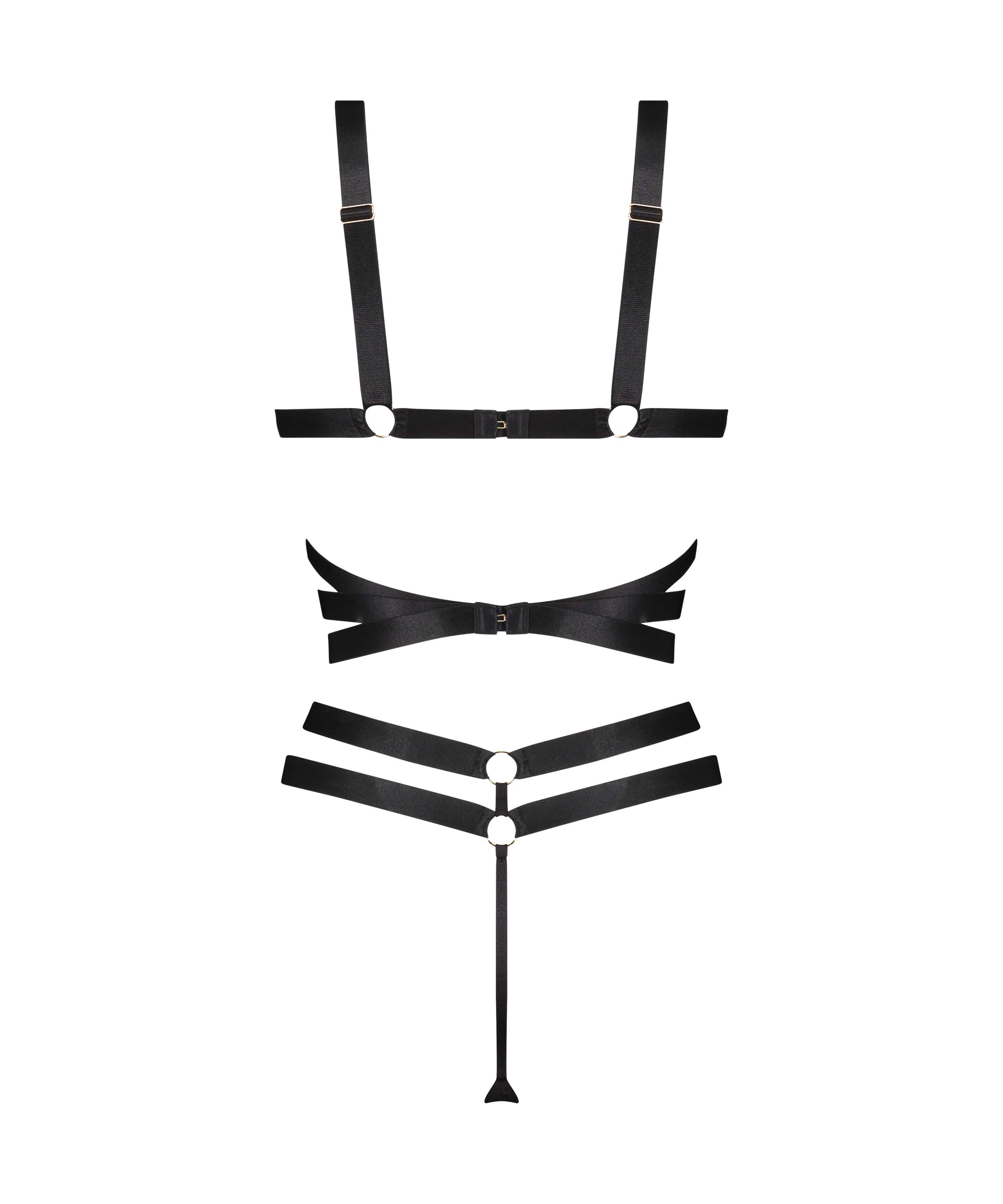 In a naughty mood? Then this body is perfect! It is made entirely of straps and rings. It has an open crotch. This body also has mesh details at the crotch. Combine with a sexy kimono from our Private collection to complete your look!