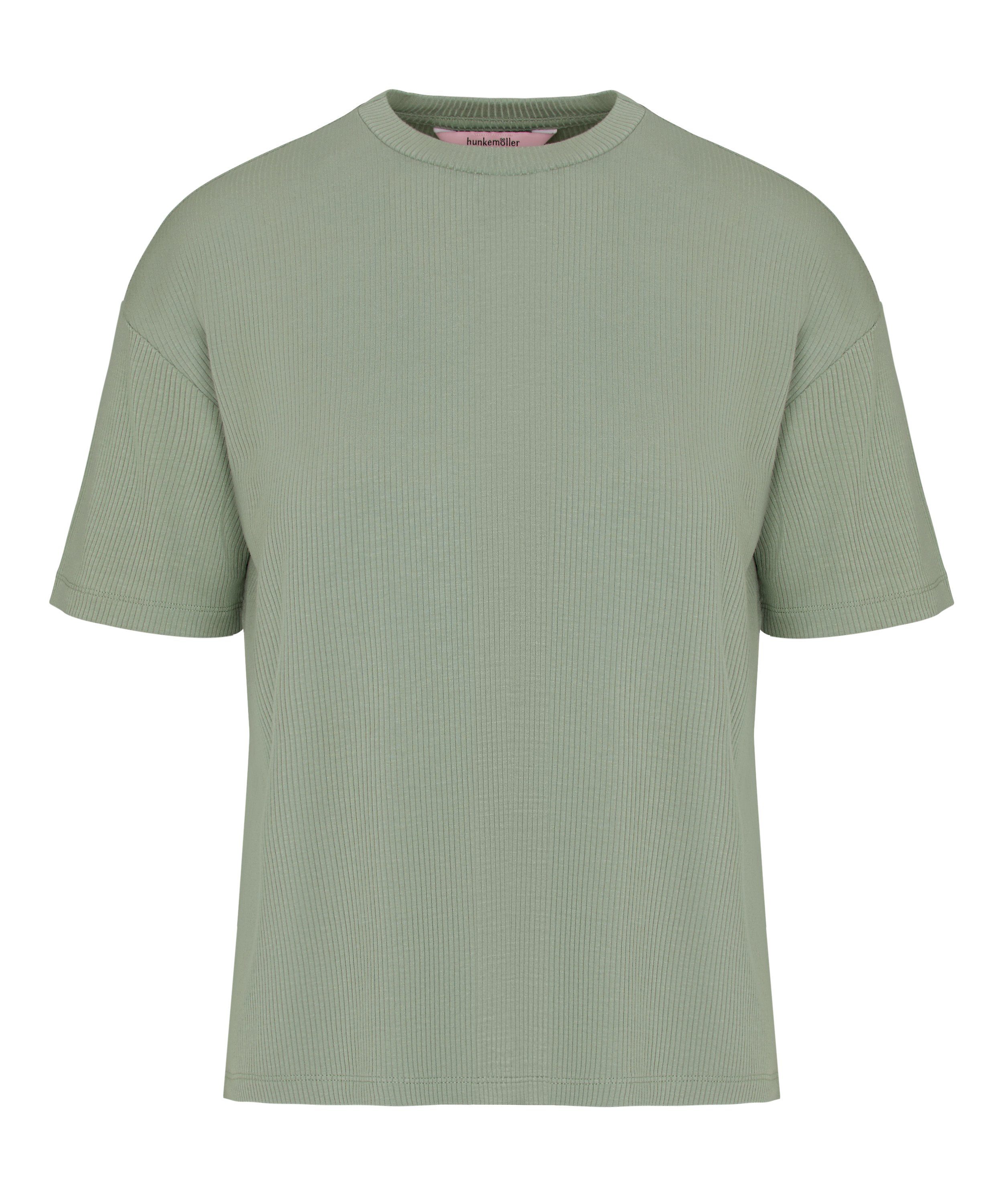 Short sleeve T-shirt in soft ribbed jersey for a comfortable everyday feel. The smooth stretch fabric follows the body without feeling tight. A classic round neckline keeps the look clean and easy to style. Lightweight construction makes it suitable for layering or wearing on its own. A reliable basic that fits effortlessly into any casual wardrobe.