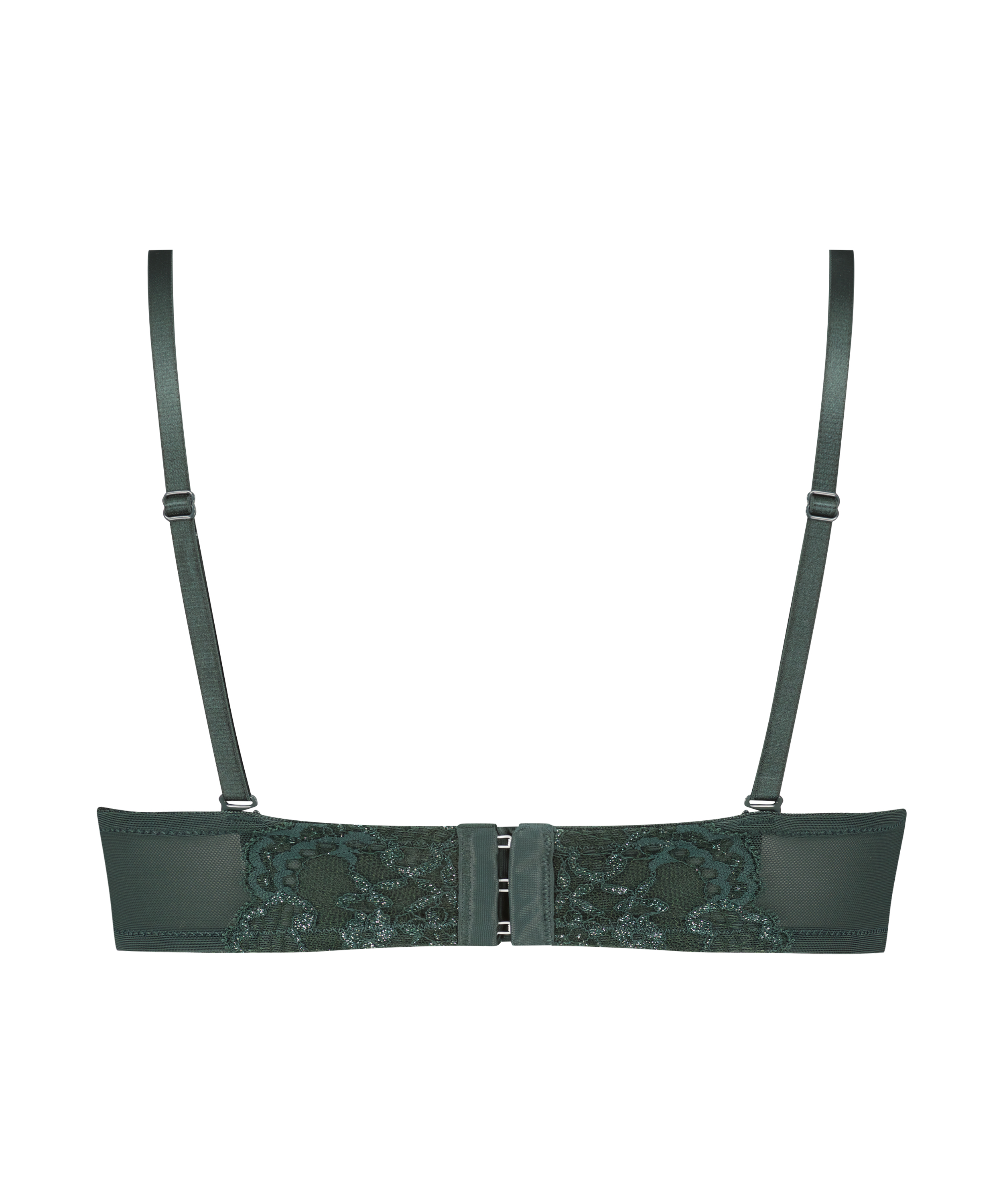 This gorgeous balcony bra is fabulous! It has detachable straps that can be adjusted to your liking. It is a padded, underwired bra. With gorgeous glitter incorporated into the lace. Combine with matching knickers for a complete lingerie set.