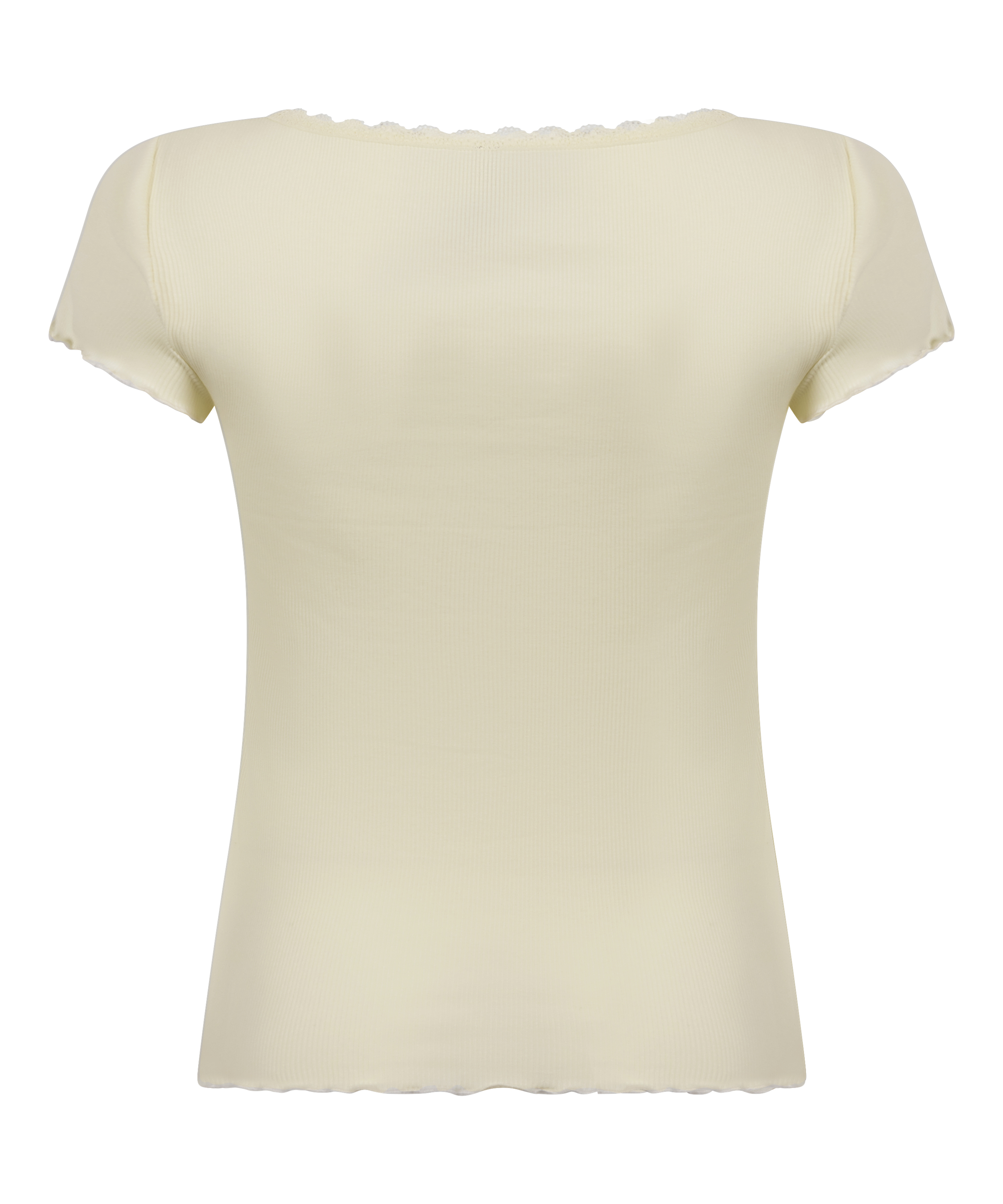 Feel cozy in this short-sleeve pyjama top with a round neckline and lace detail. Ruffles on the sleeves and hem add a playful touch. The soft, stretchable fabric ensures comfort all night.