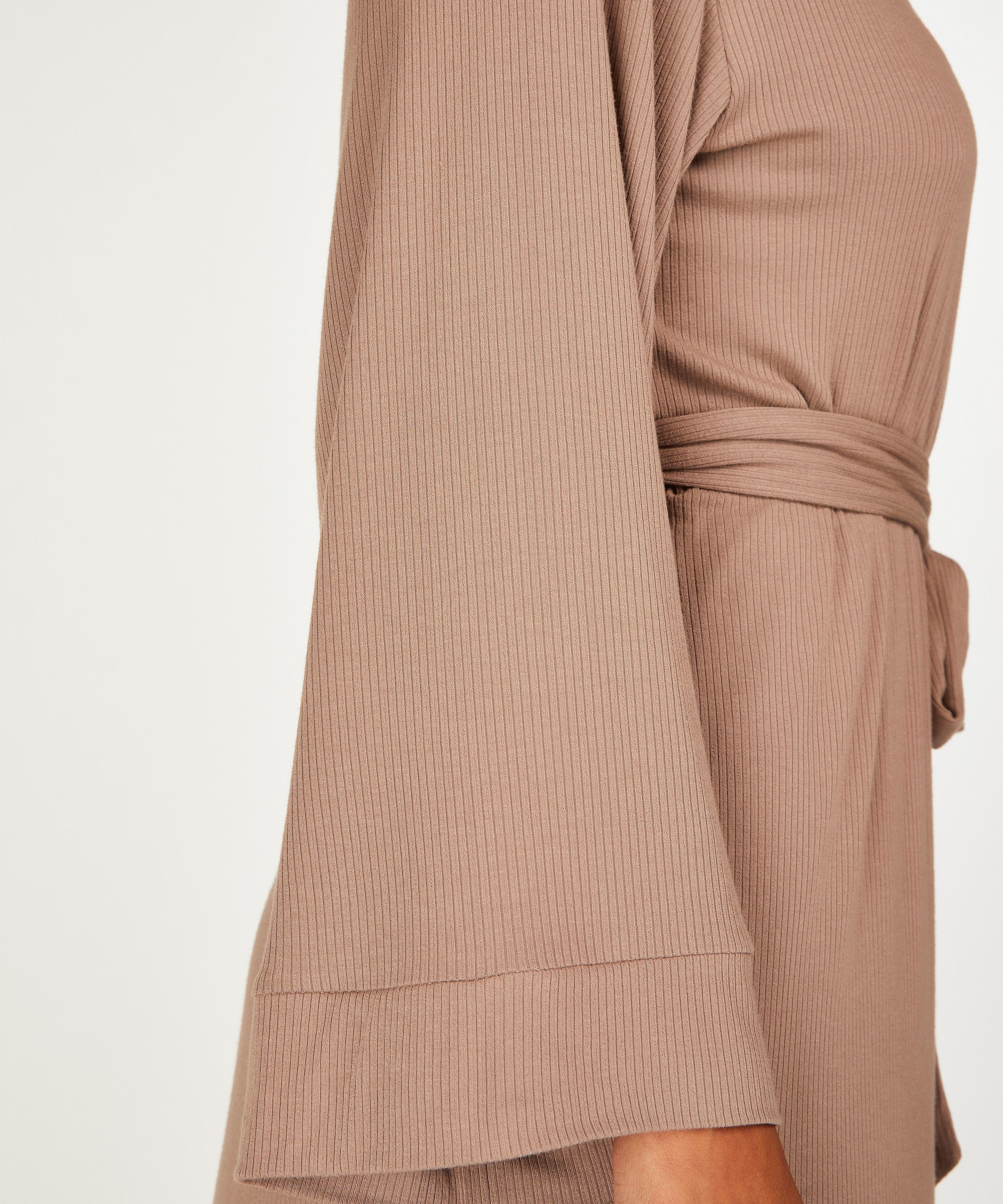 Go for a comfortable look in this fantastic kimono! It is made of a stretchy ribbed fabric for extra comfort. Combine with fun slippers for a fantastic set!