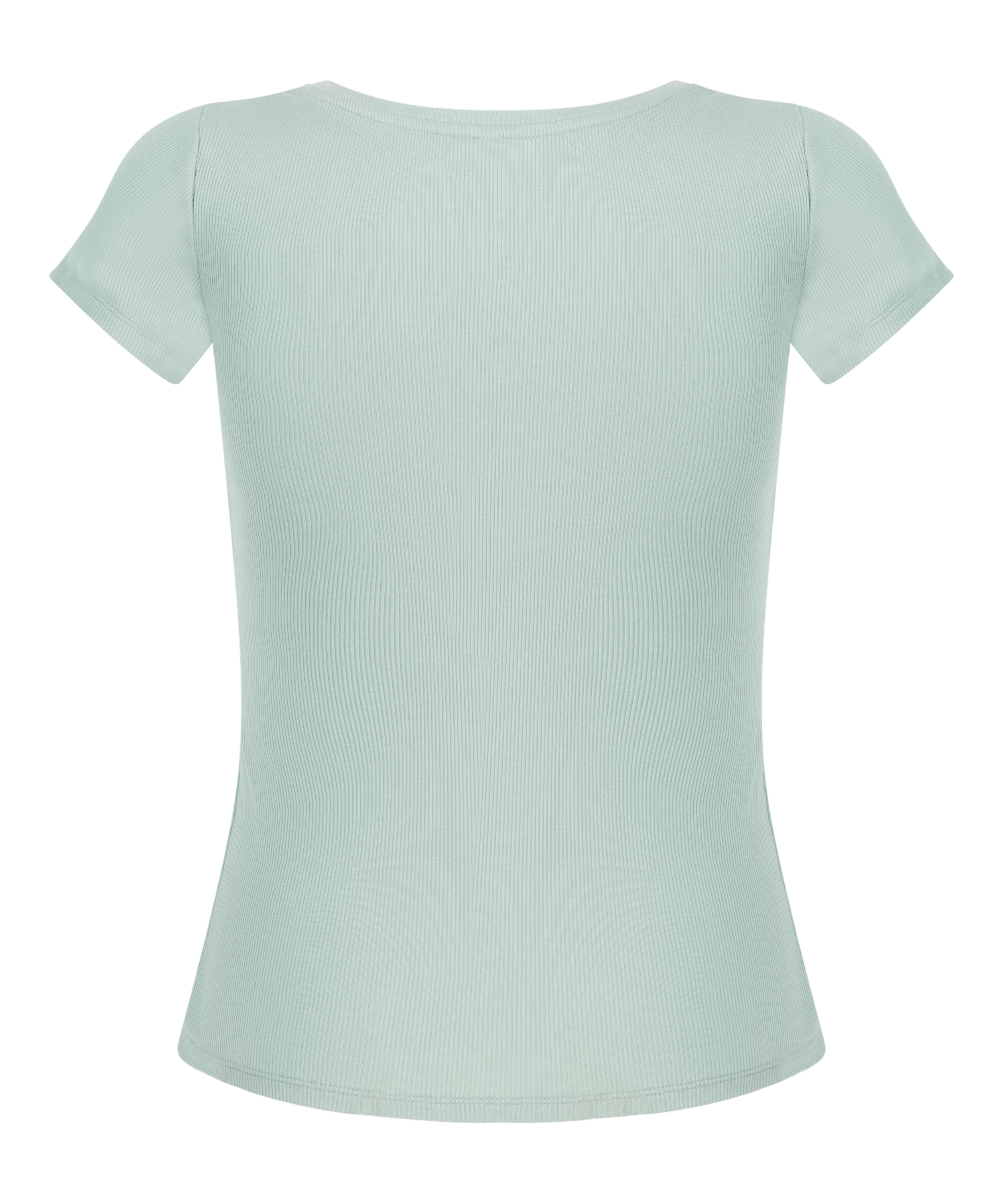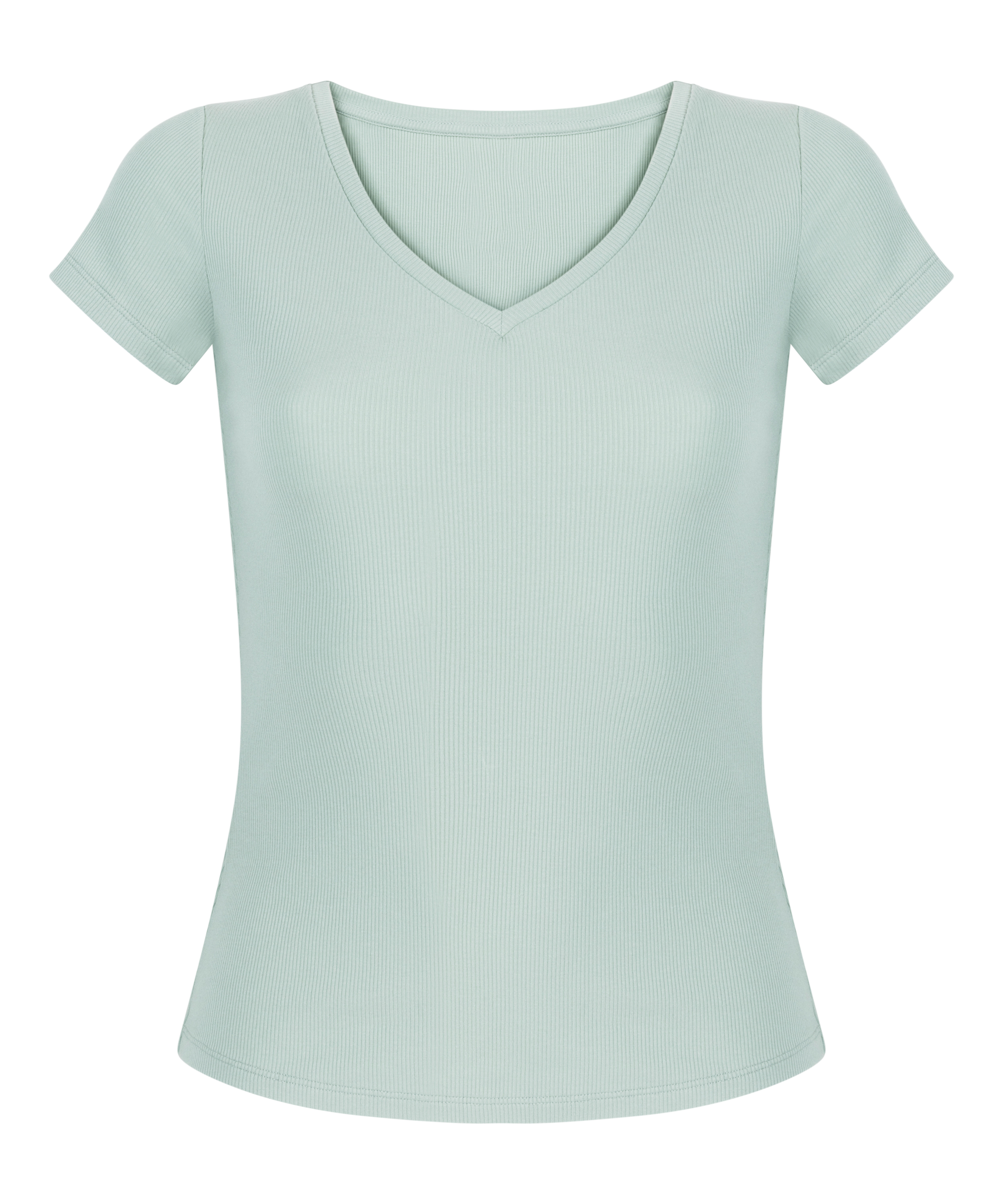 Ribbed Jersey Short-Sleeved Pyjama Top - Green