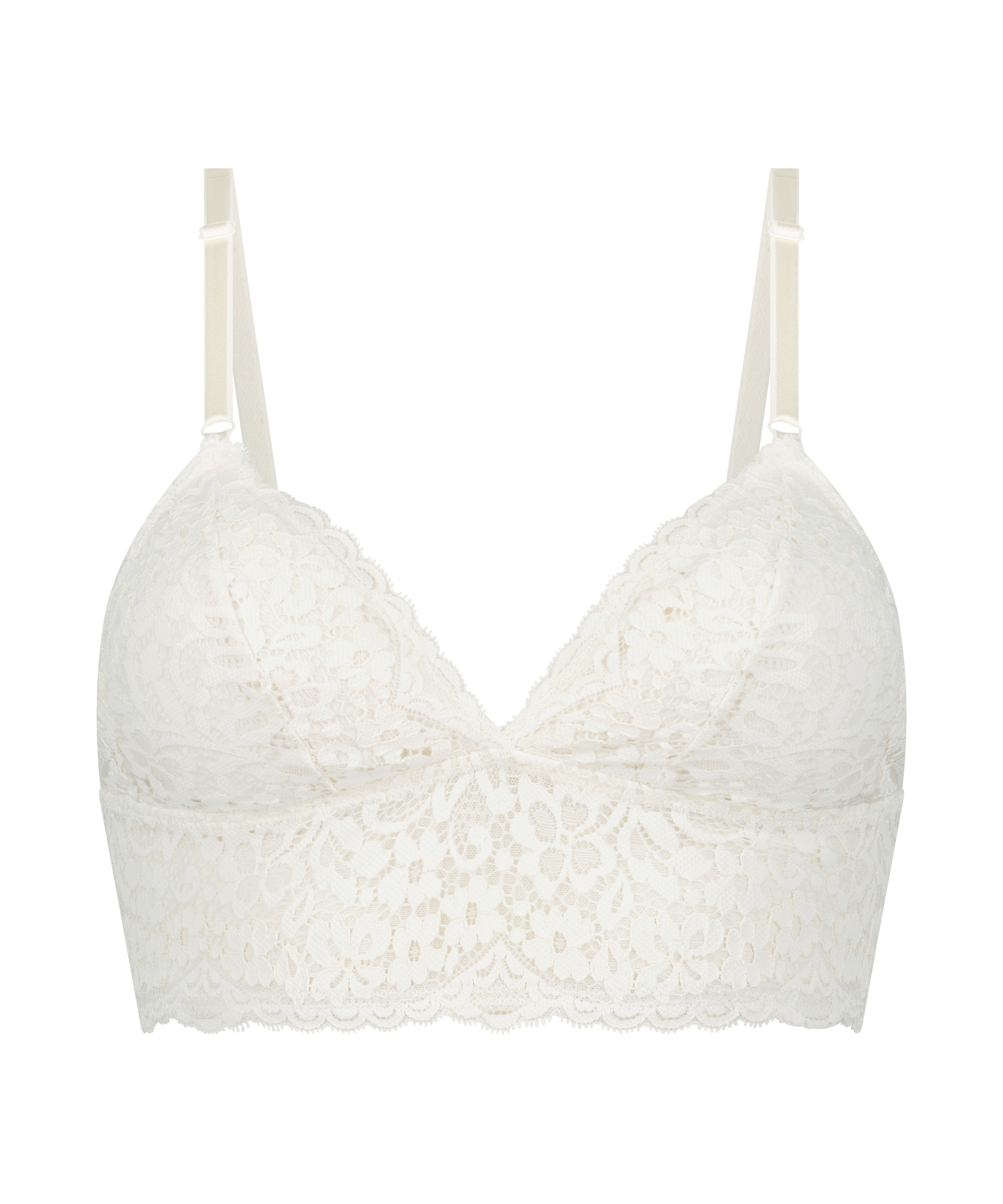 This bralette is super comfy! It has removable cups. It is covered entirely with lace Combine with the matching knickers for a complete set!