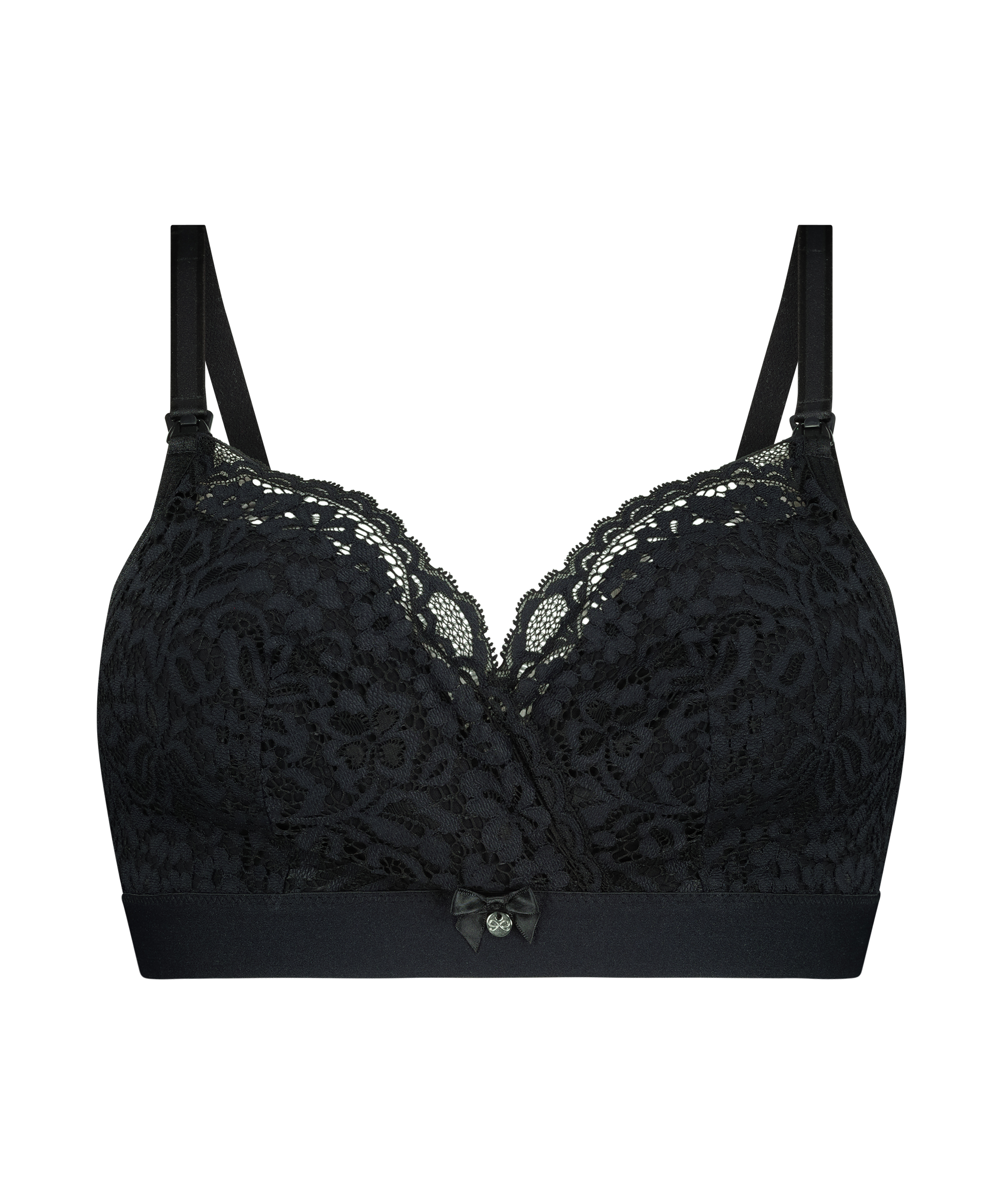 This padded nursing bra is not only practical but also looks stunning! This bra is finished with lace on the cups. The cups are removable, so you can easily feed your baby.