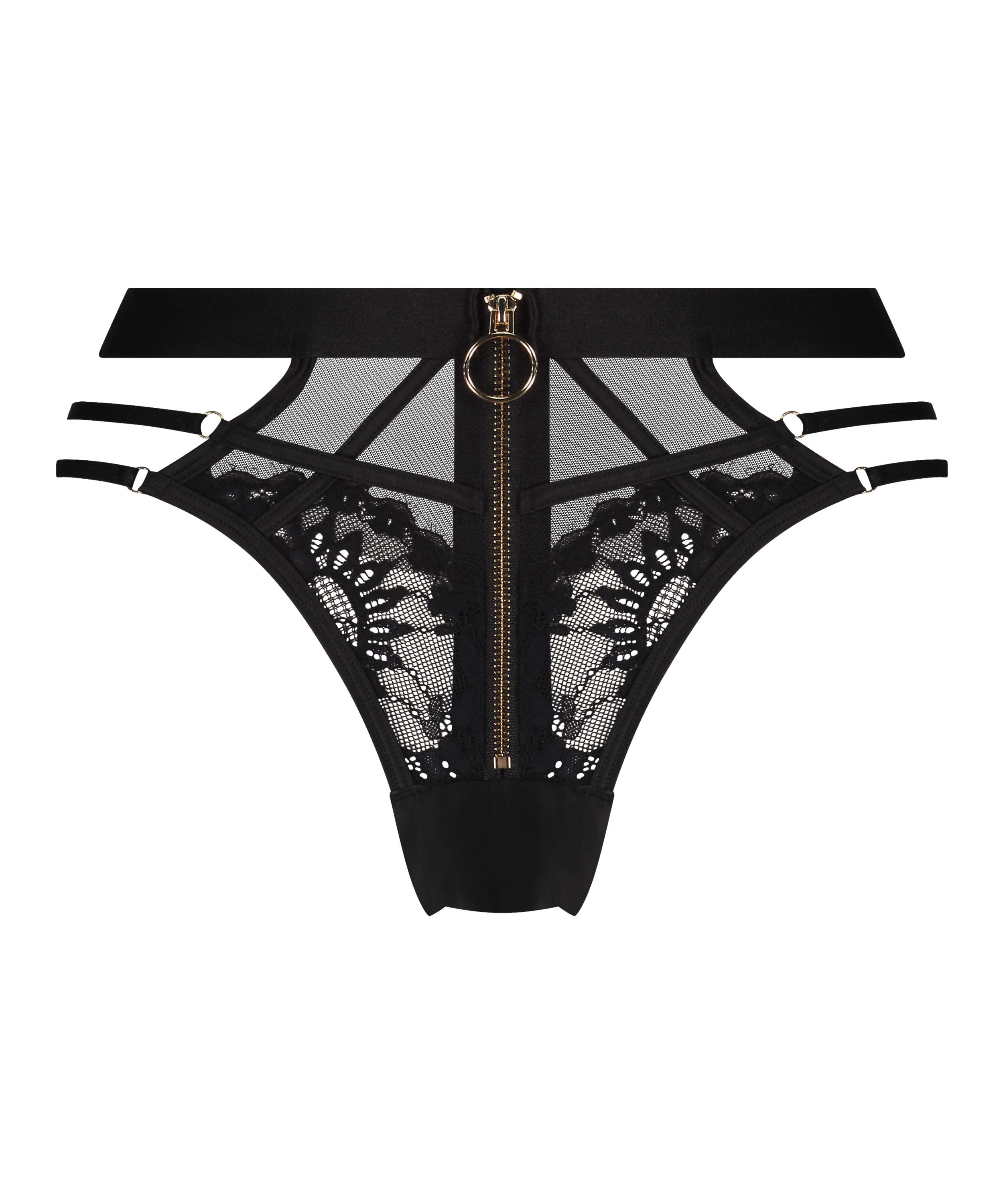 Complete your set with this sexy brazilian knickers. This brazilian knickers features a zip and lace for a very sexy effect. From our Private collection.