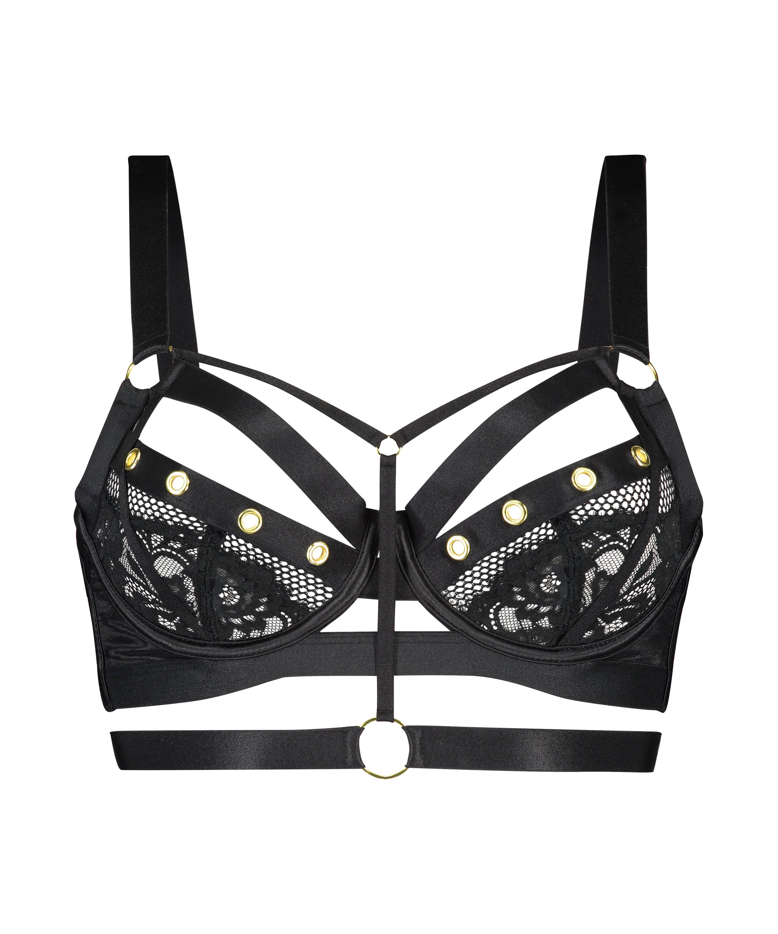 Feeling provocative? Put this sexy bra on! The bra is covered in straps. The cups are made of lace. There is also a wide closure at the back, making it super comfy. Combine with the matching knickers from our Private Collection for a complete look!