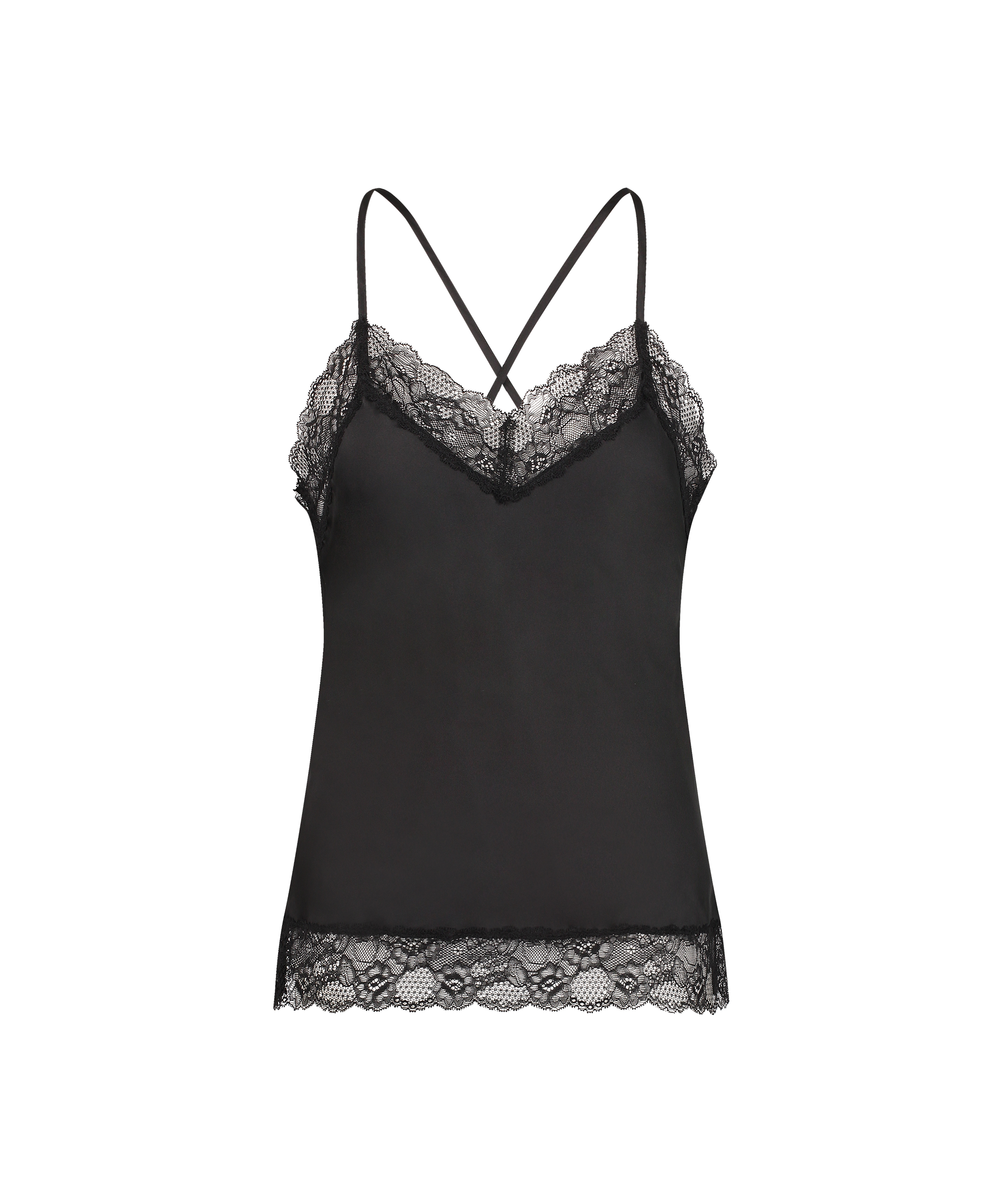 This top is made of sumptuouss satin. The upper edge is trimmed with lace. The back straps are adjustable. Combine with matching items to complete your set!