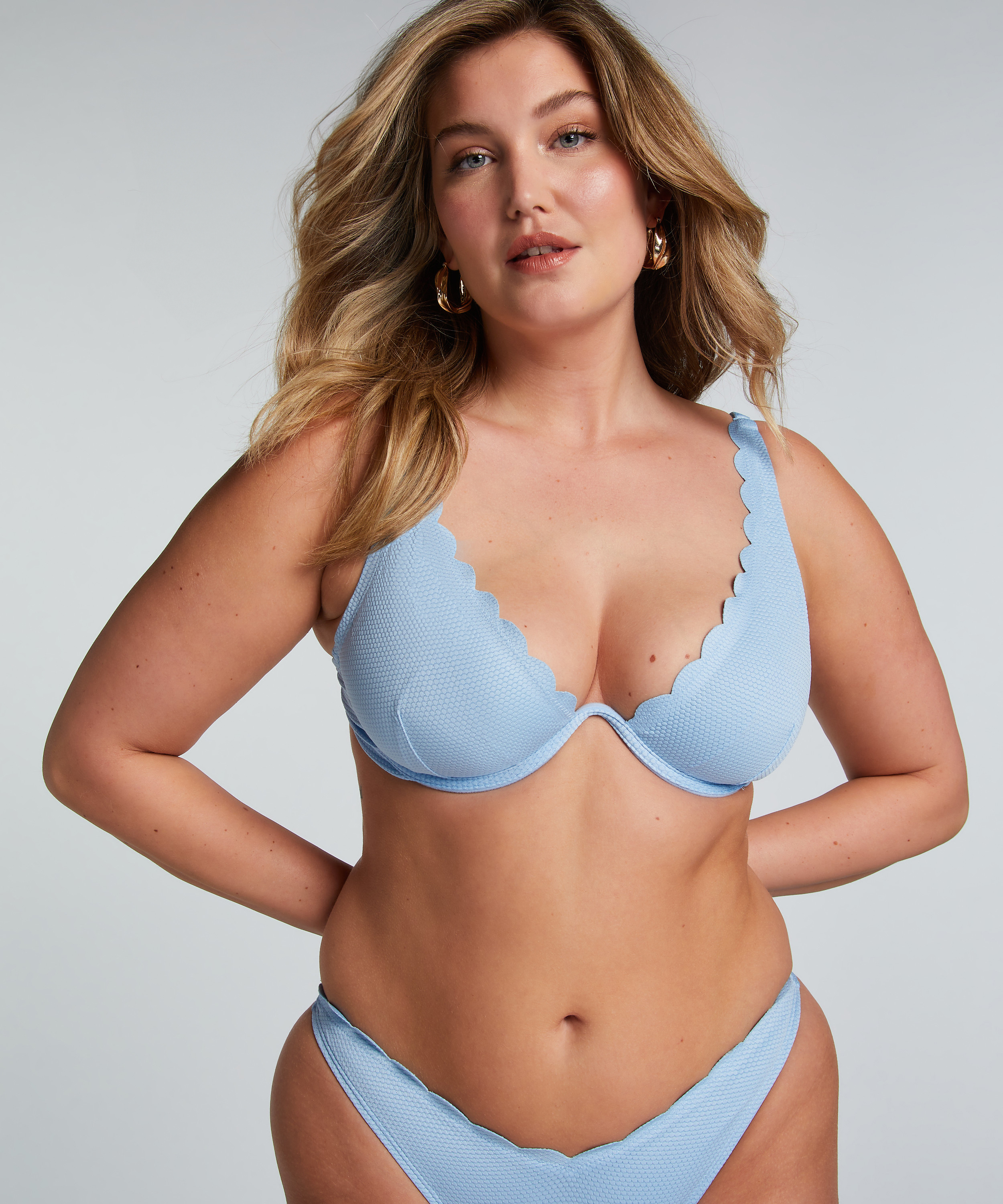 Scallop Non-Padded Underwired Bikini Top - Blue