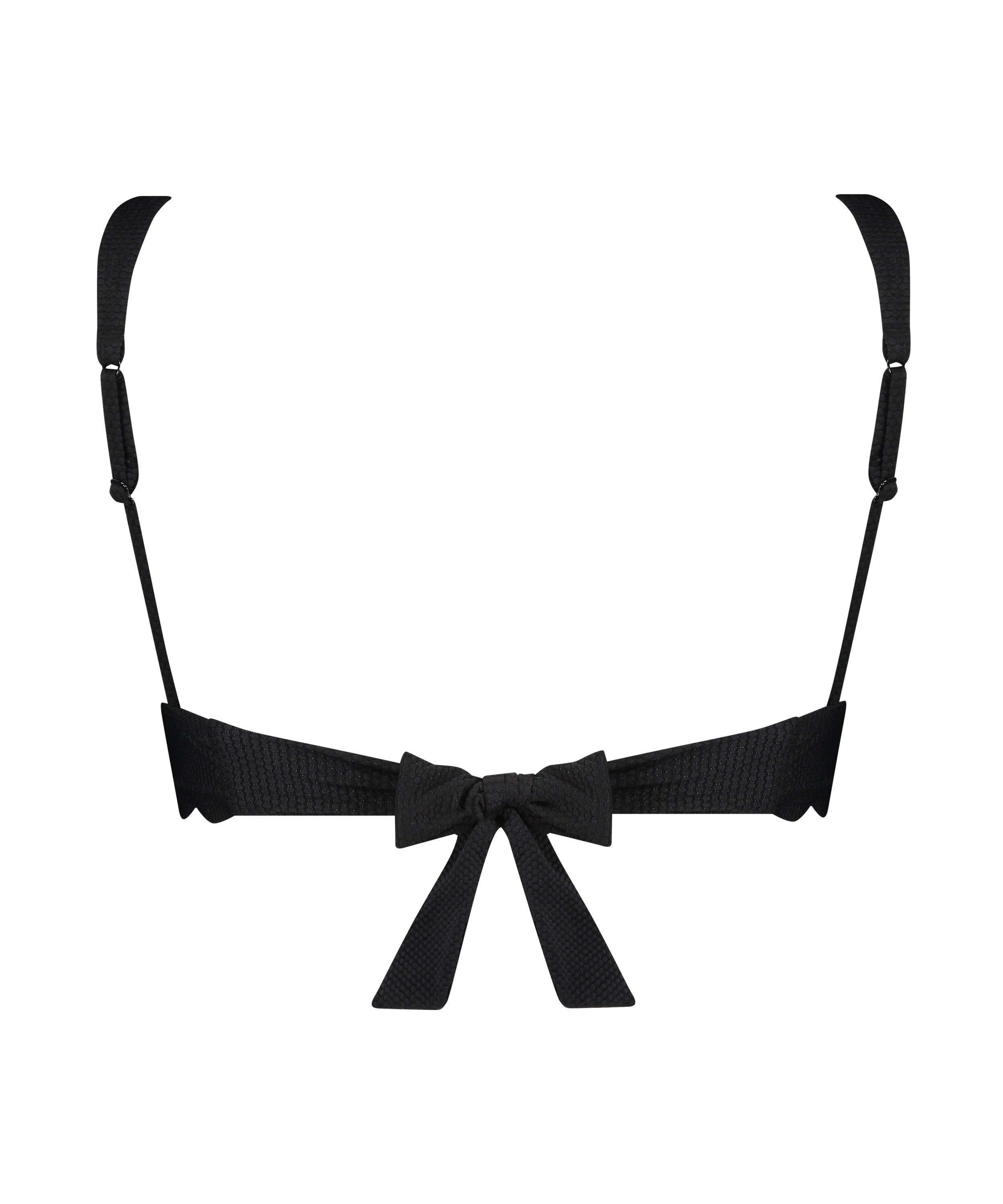 Get out in the sun in this beautiful bikini top! This bikini top is not padded, giving it a comfortable fit. The edges are wavy and there is a bow closure at the back. The clean forms of this bikini top give you the perfect tan lines. Combine this top with the matching bottoms for a complete set!