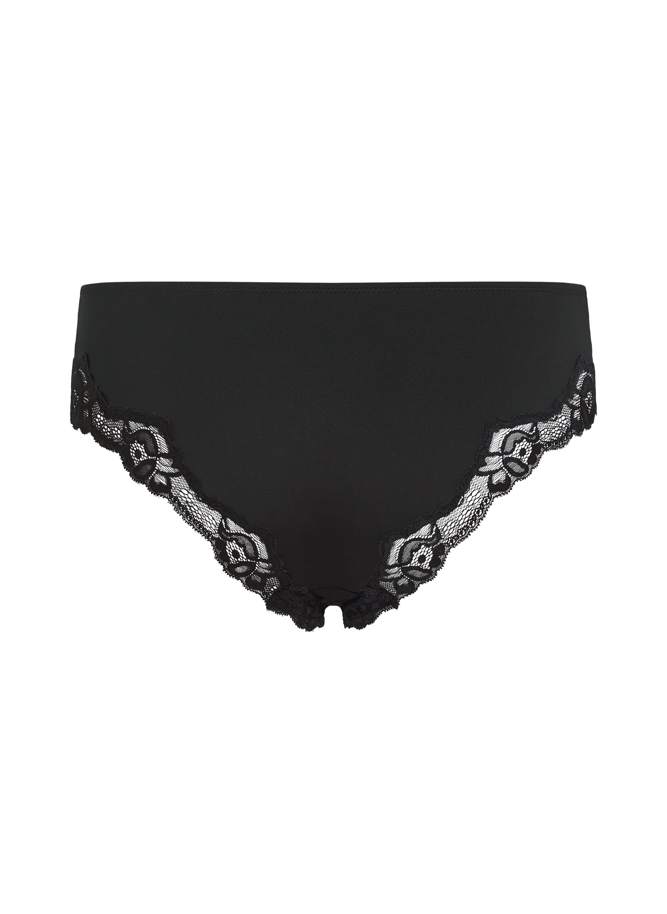 Elegant brief finished with floral-patterned lace. The microfibre fabric and the decorative bow on the front give these briefs a luxurious look. Matching items available. Item from the basic range.
