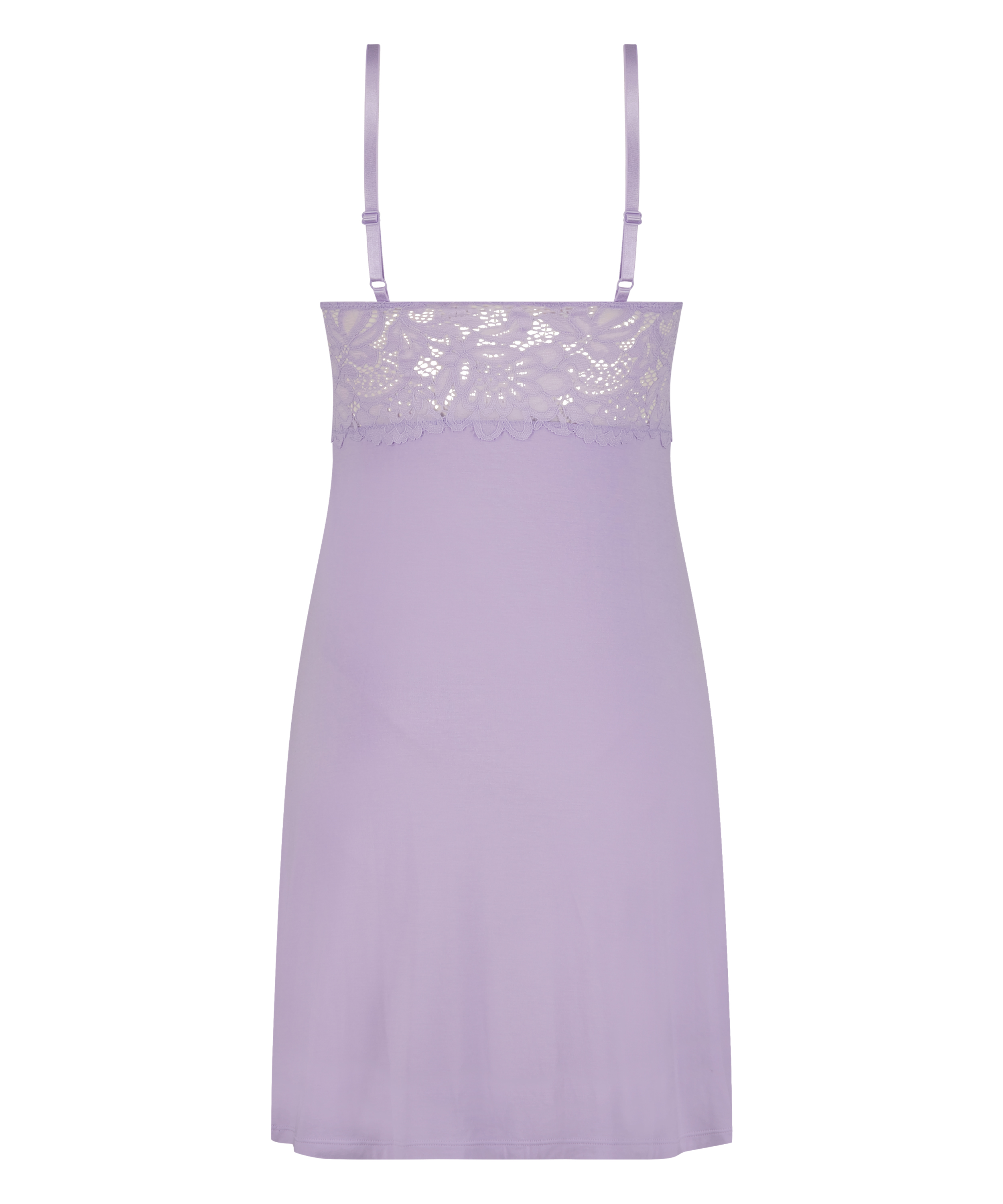 Feel sexy in this slip dress decorated with lace details. This slip dress reaches to just above the knees and has adjustable shoulder straps.