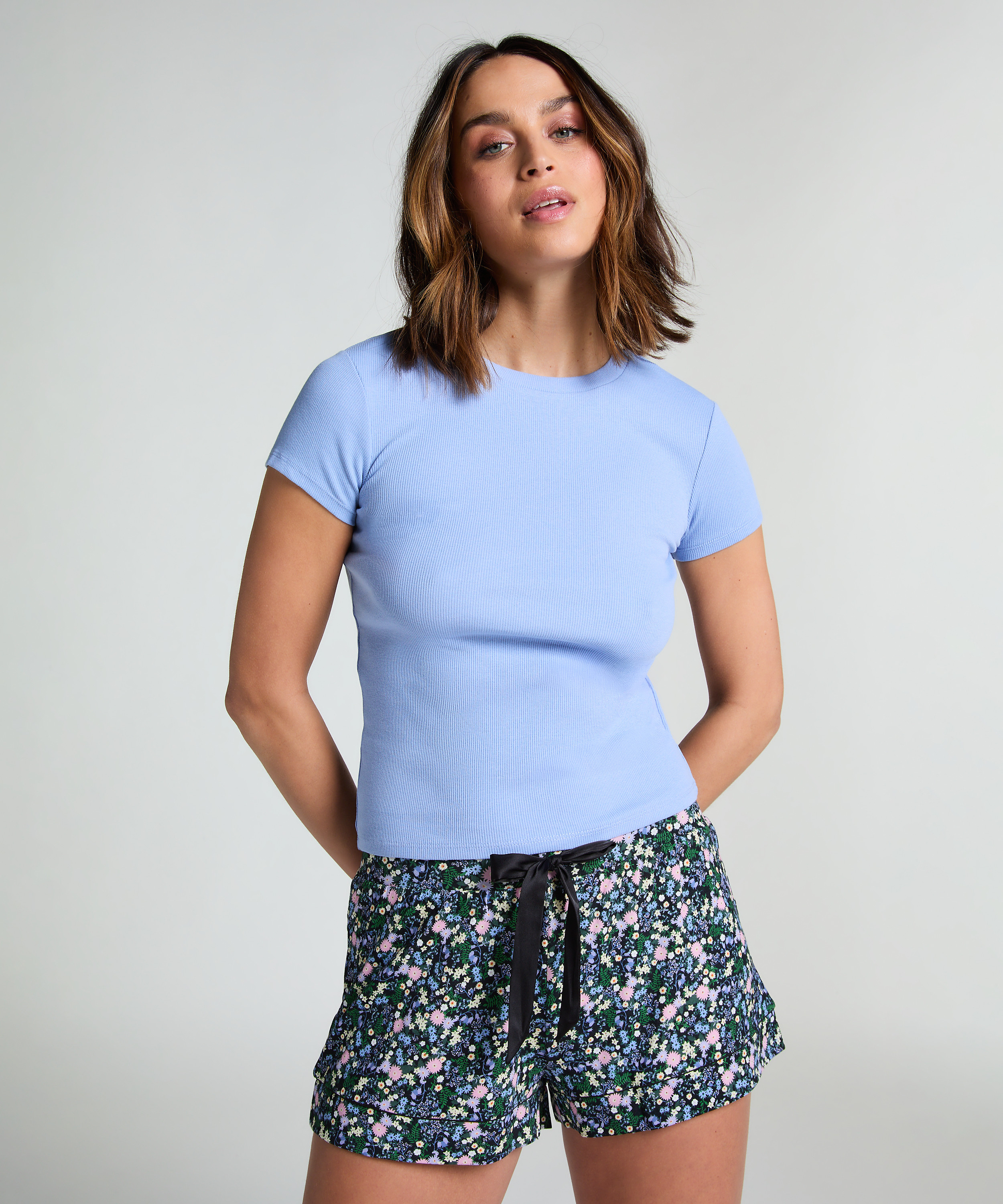 Slip into bed with these cute pyjama shorts made from soft, supple fabric for ultimate comfort. The adjustable waistband features a satin bow at the front for a touch of elegance. Decorative black thread detailing at the bottom adds a stylish finishing touch to these cozy shorts.