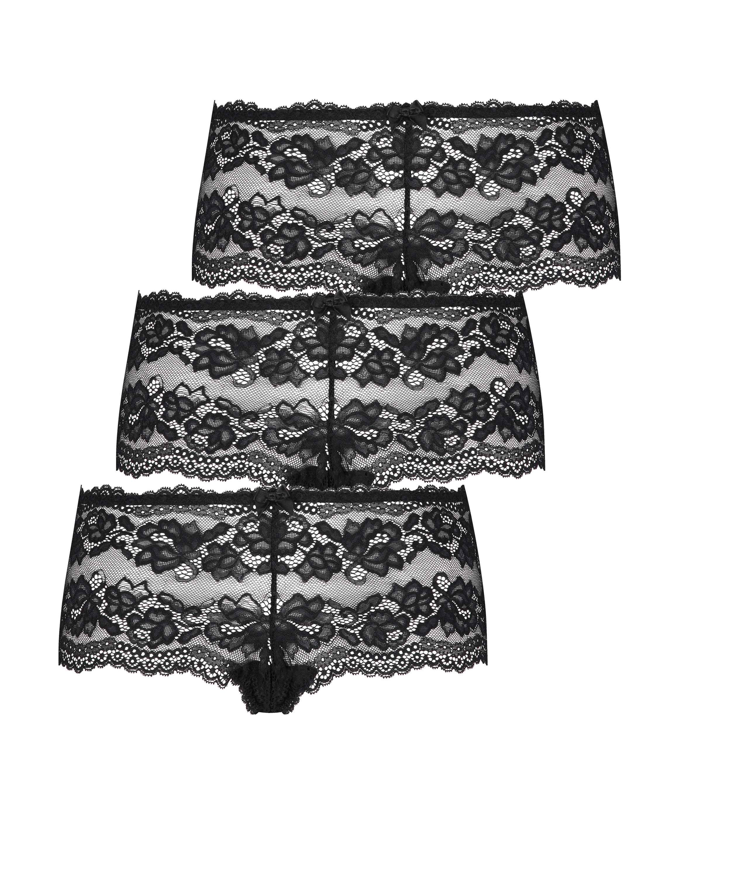 Feel sexy in these boxers! The boxers are fully trimmed with lace and have a small bow. And in a handy 3-pack! Combine with a matching bra!