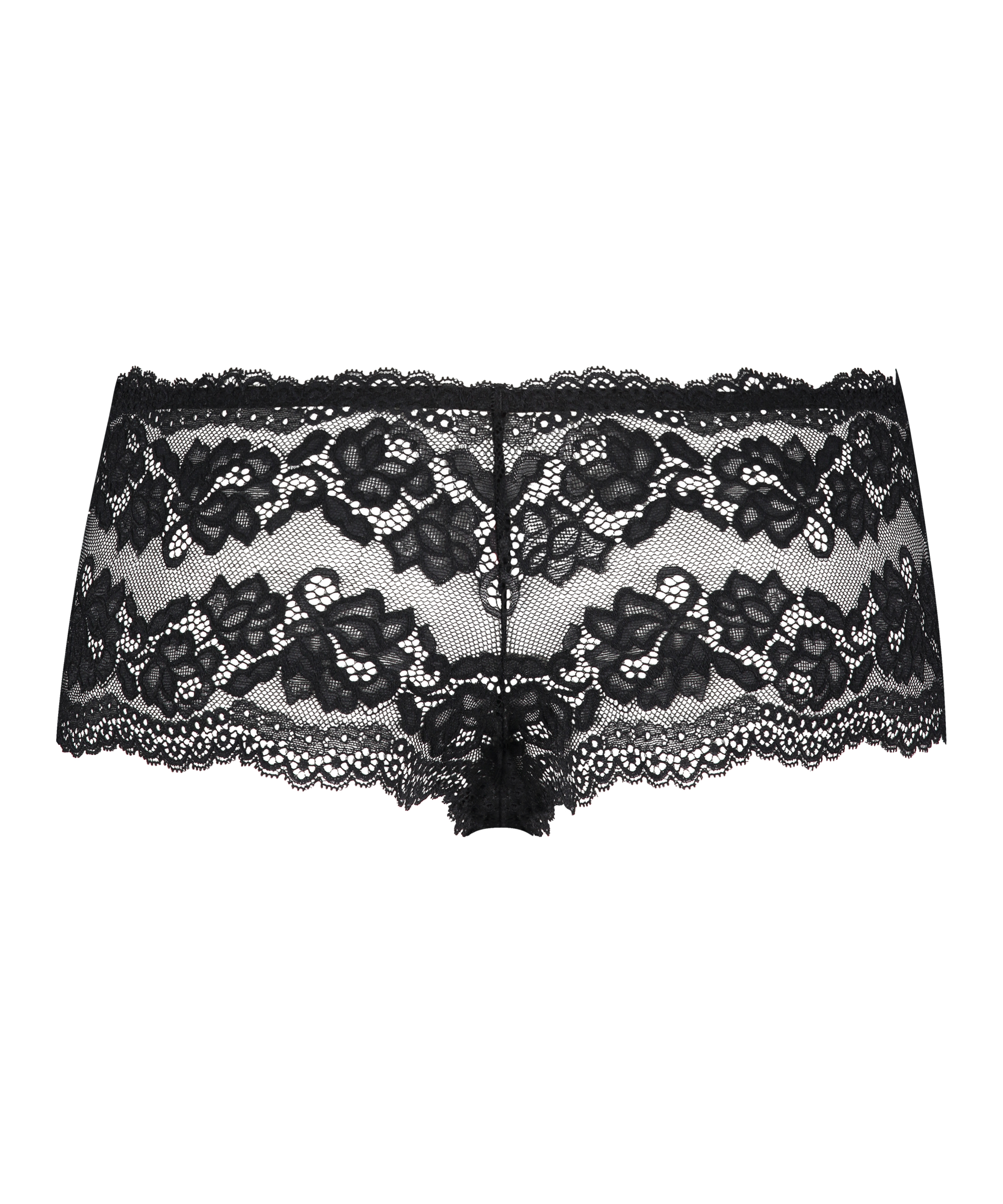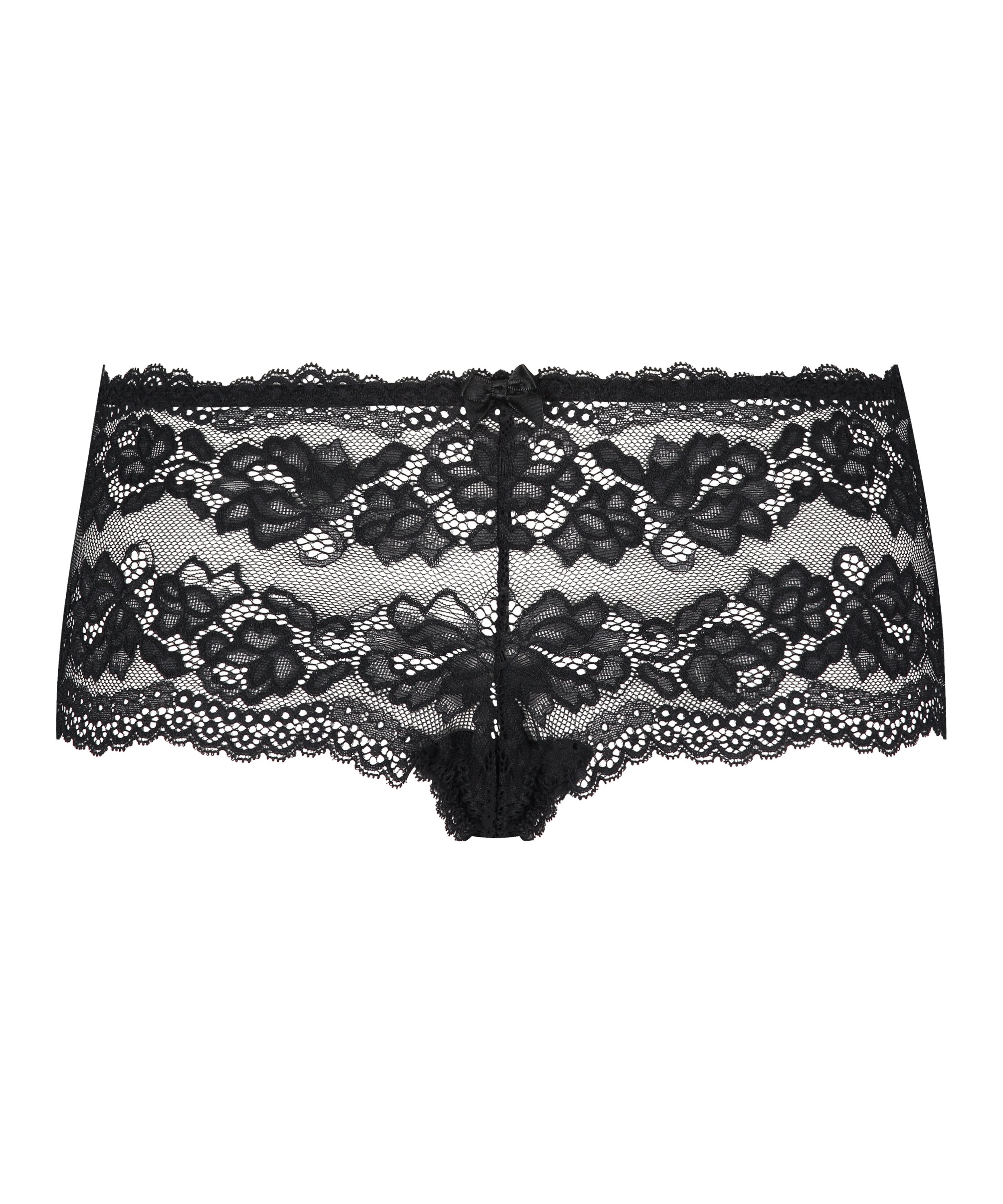 Feel sexy in these boxers! These all-over lace boxers are trimmed with a small bow. Combine with a matching bra for a beautiful set! This super comfortable essential has a new and improved hand feel, very soft and stretchable. With a beautiful flower pattern lace which makes this style extra fashionable.