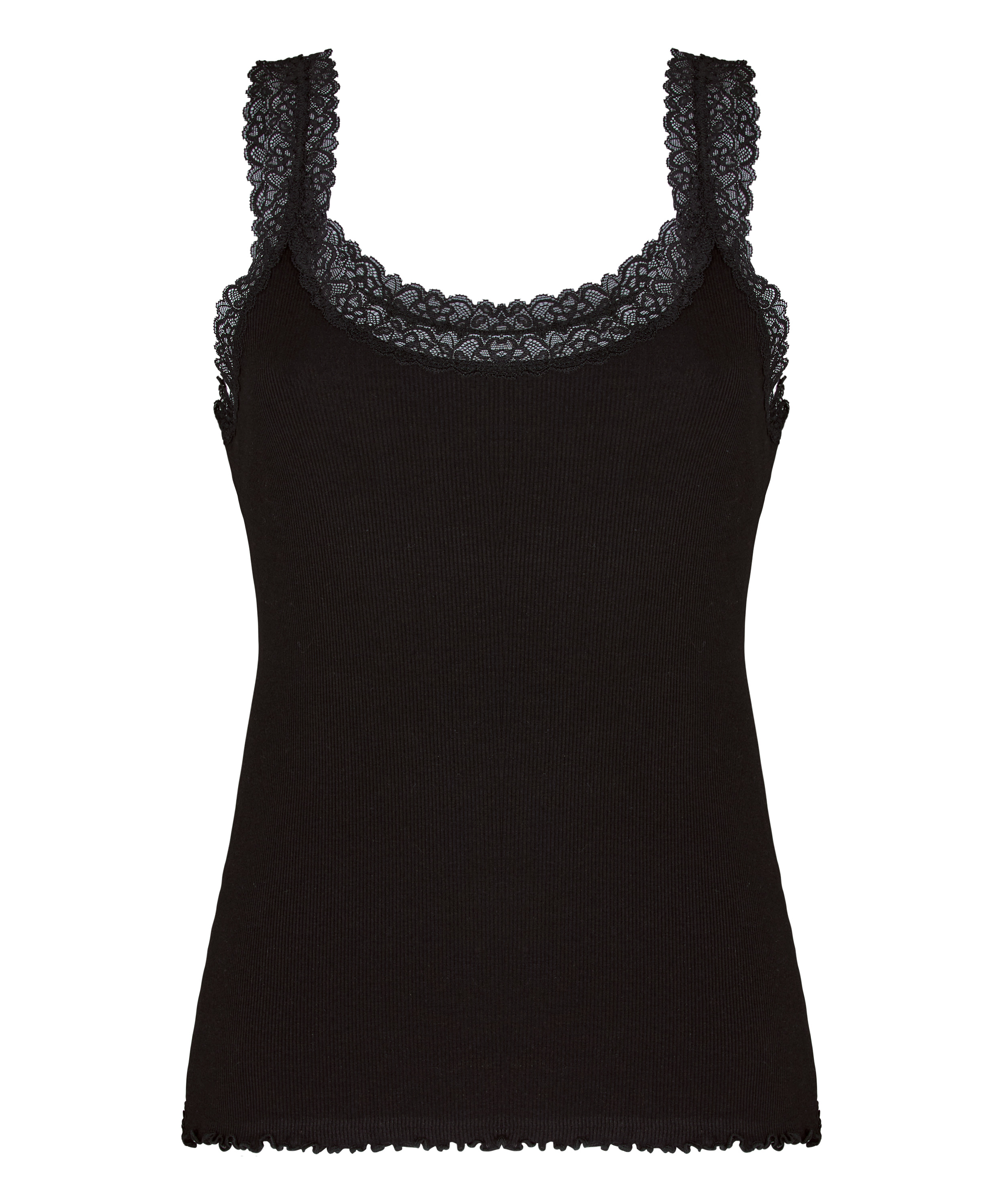 Singlet Rib Jersey Lace - Black