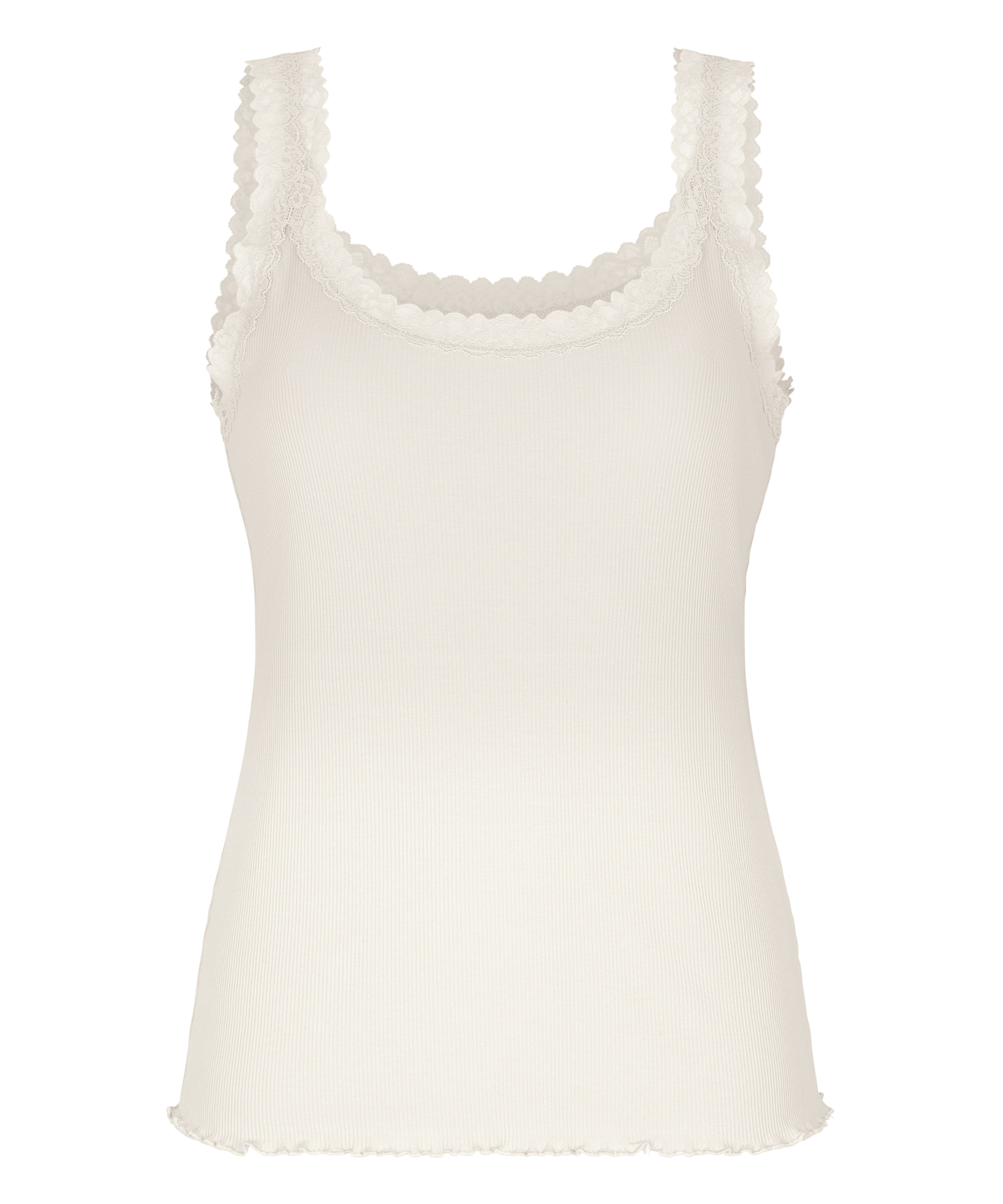 Add a touch of elegance to your everyday pyjama essentials. Made from soft, stretchy ribbed fabric, it hugs your body comfortably while offering a flattering, form-fitting silhouette. The lace adds a feminine, romantic details that elevates this simple piece. Perfect for lounging or a good night sleep.