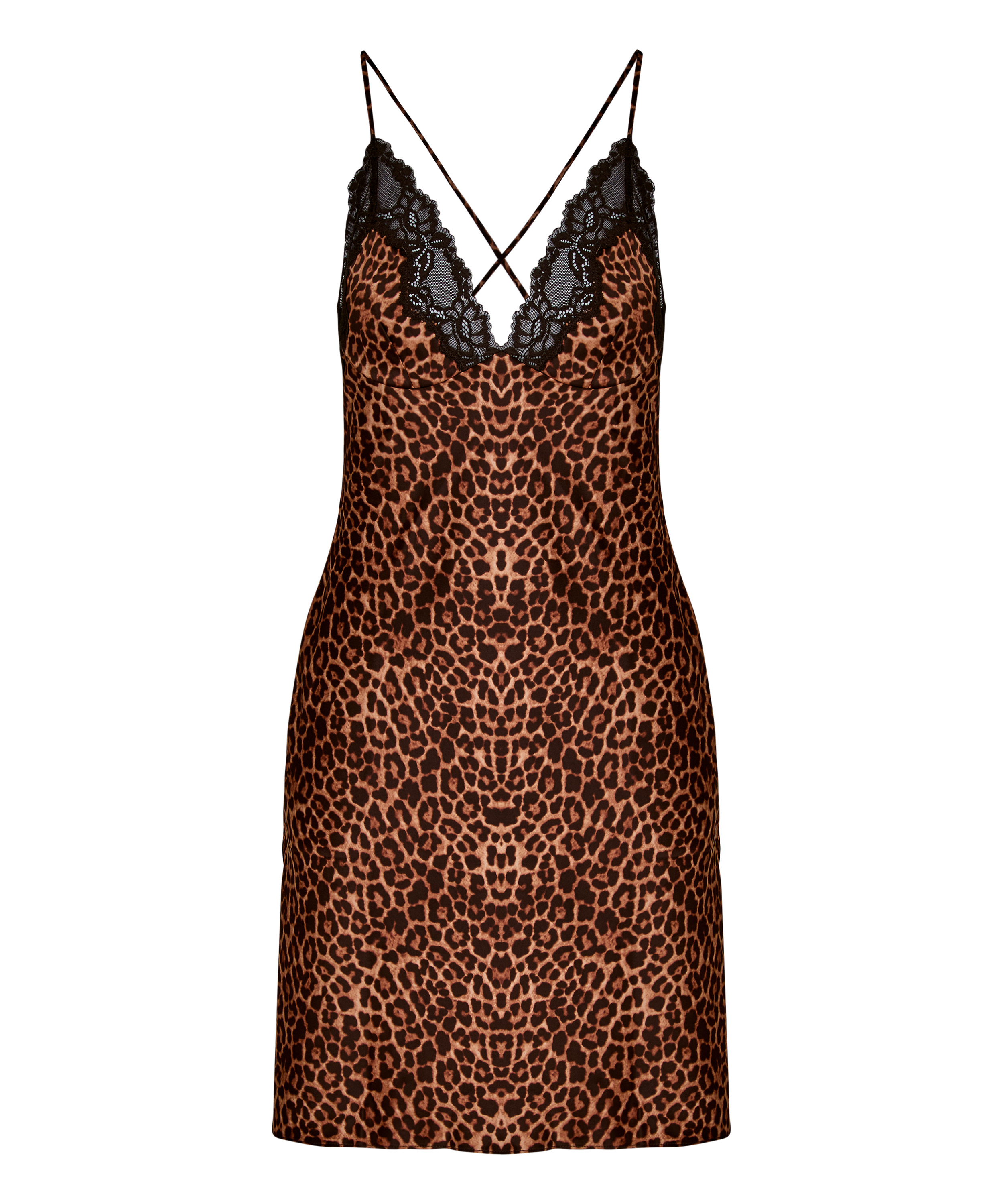 Turn up the allure with this leopard slip dress, made for bold nights and cozy mornings. Crafted from smooth fabric, it feels super soft against the skin while adding a touch of wild glamour. Delicate lace details bring a feminine, romantic contrast to the fierce animal print, creating the perfect balance of cute and confident. Designed with adjustable straps for a flattering, customizable fit, this sleepdress is perfect whether you’re lounging or sleeping! Pair it with the matching kimono for a complete look!